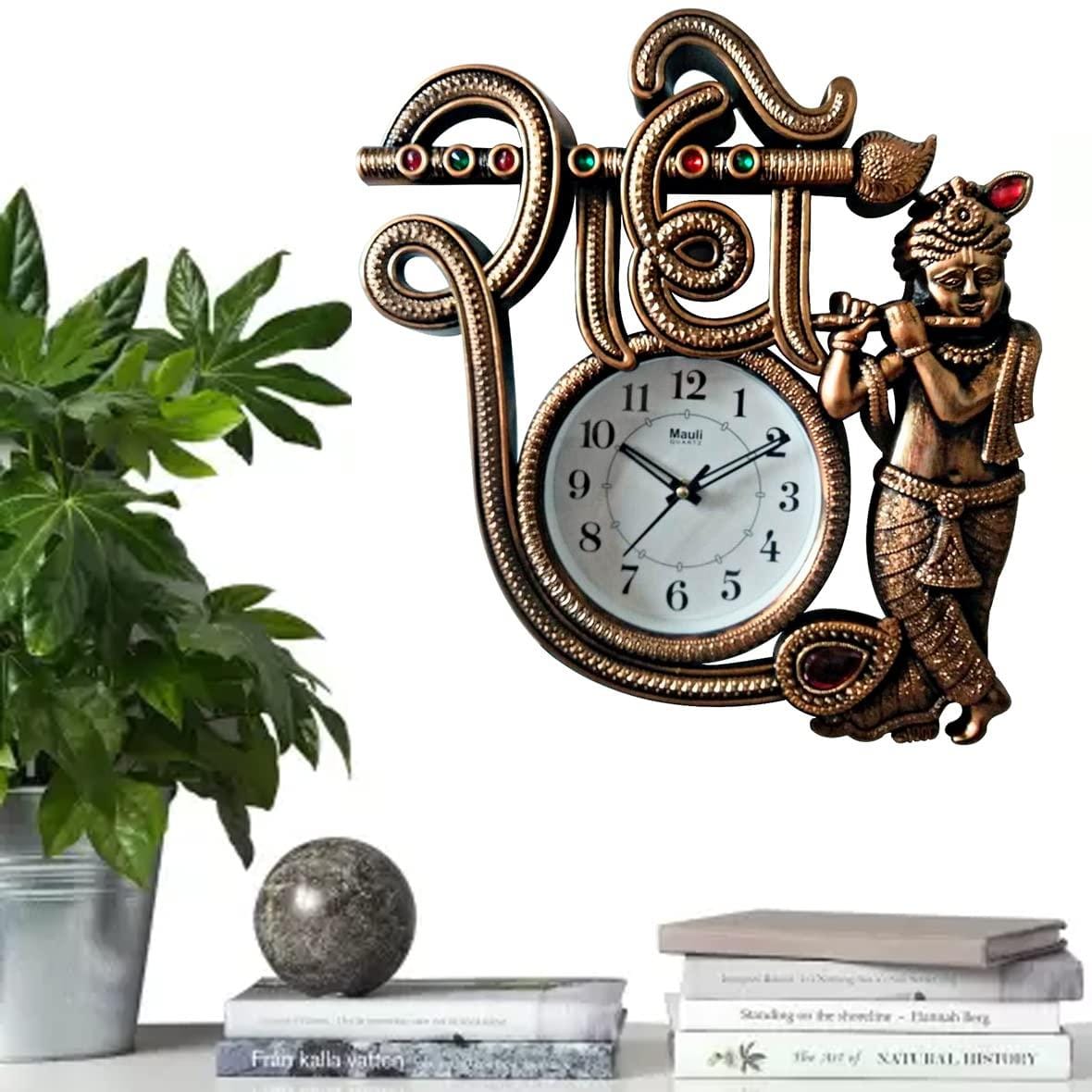 Classic Radha Krishna unique style analog wall clock wall clock for home decor. Material: Plastic, Color: wooden color; Frame Material: Plastic; Clock Type: Analog This is...