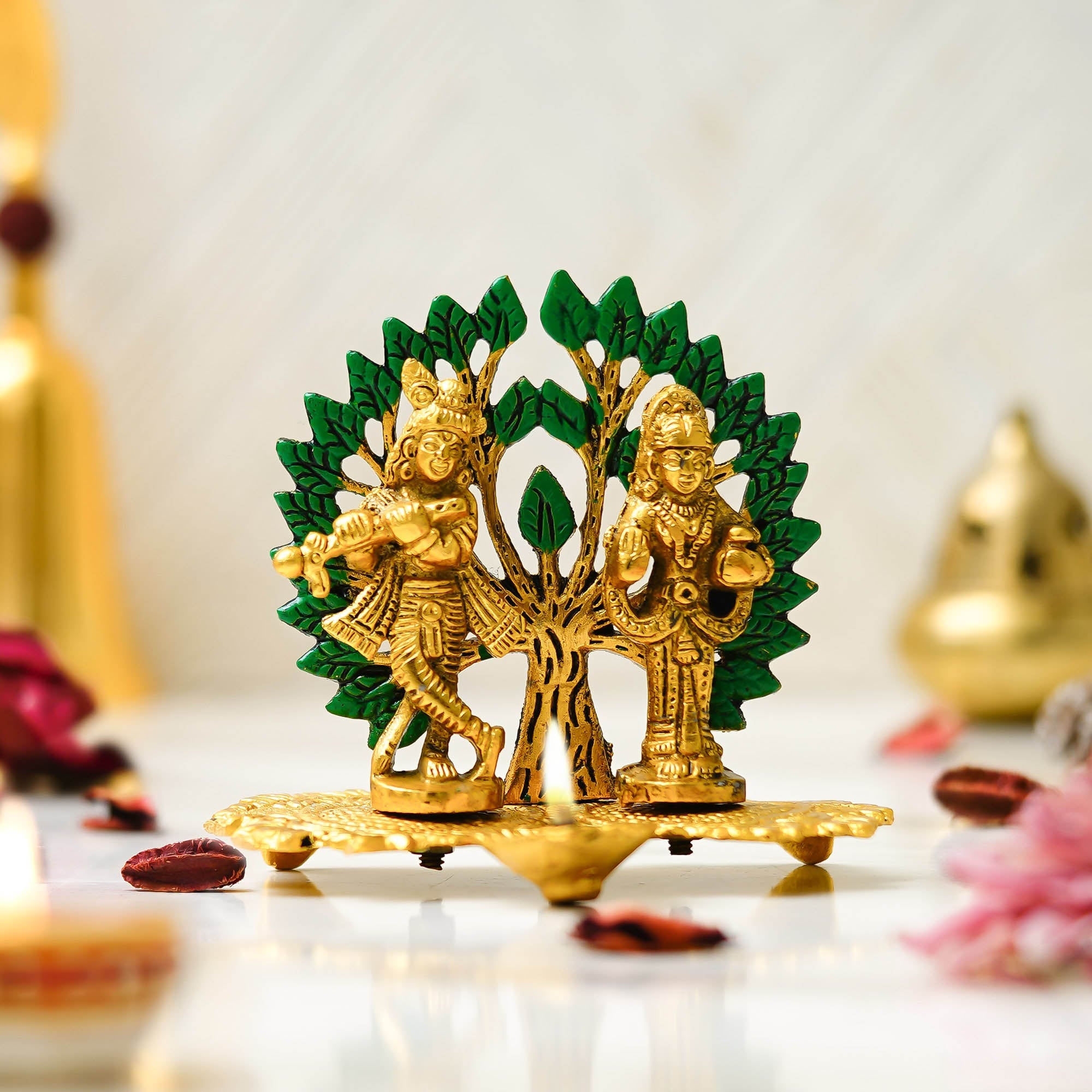 Regular price Rs. 399.00Sale price Rs. 399.00 Regular price Rs. 1,299.00Unit price / perpackage Contents; 1 Radha Krishna Idol With Tree Statue For Pooja Room Material: Metal With Gold Finish This metal decorative item Enhance the decor value of...