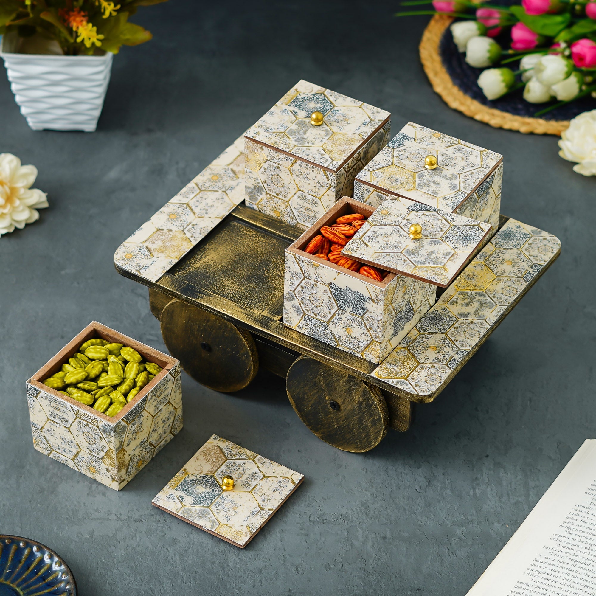 Webelkart Premium Handmade Enamel Coated Dry Fruit Container Jar Set With Lid For Table Top Home Decor,Dry Fruit Box,Serving Tray for Serving Sweets/Set Of 4 Jar Set With 1 tray (11" Inches)