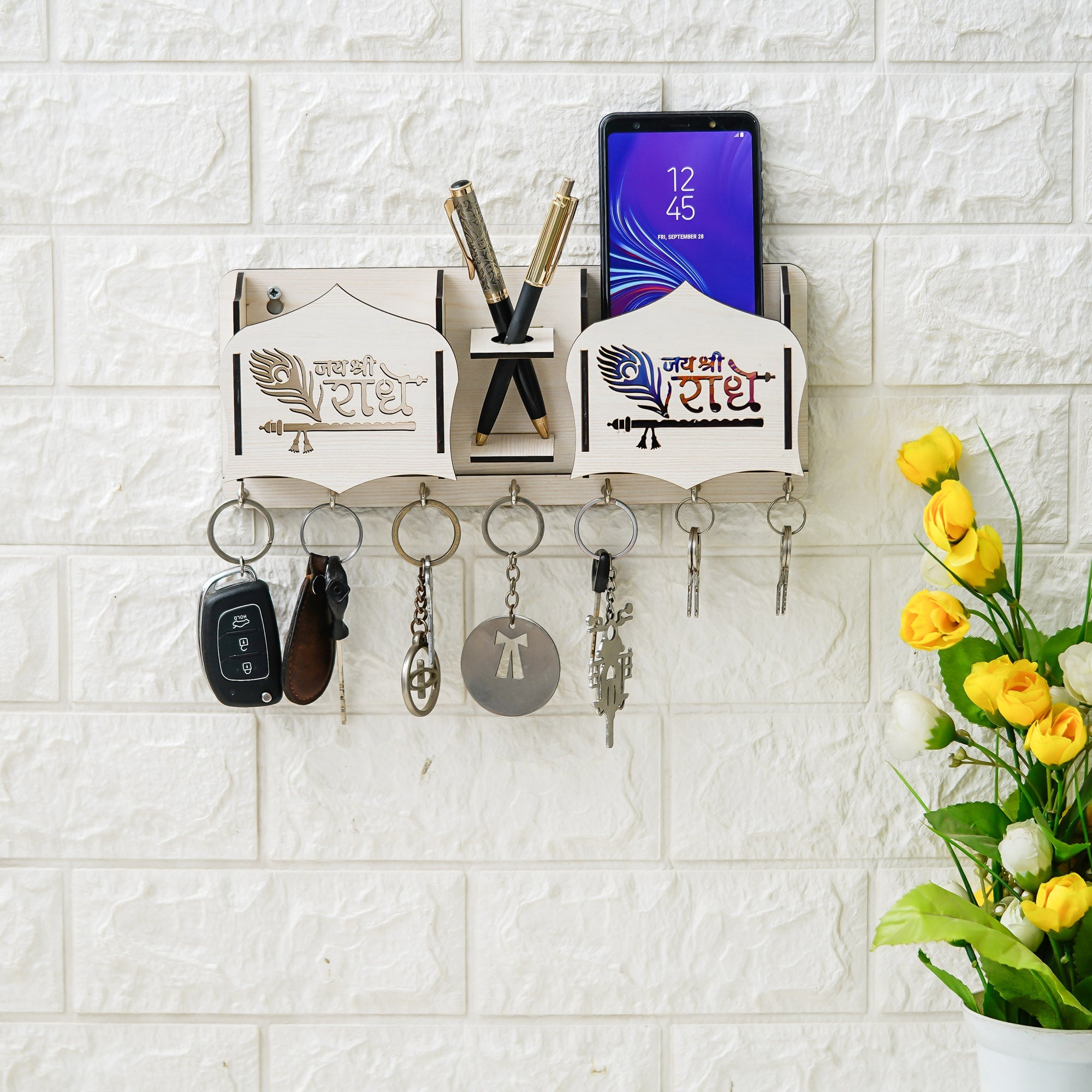 Webelkart Antique Wall Mounted Key Holder for Home/Office Decor/Key Hanger for Wall Decor, Key Stand for Home,Key Chain Decorative Item for Home Jay Shree Radhe Designer Key Holder(11.5" Inches)