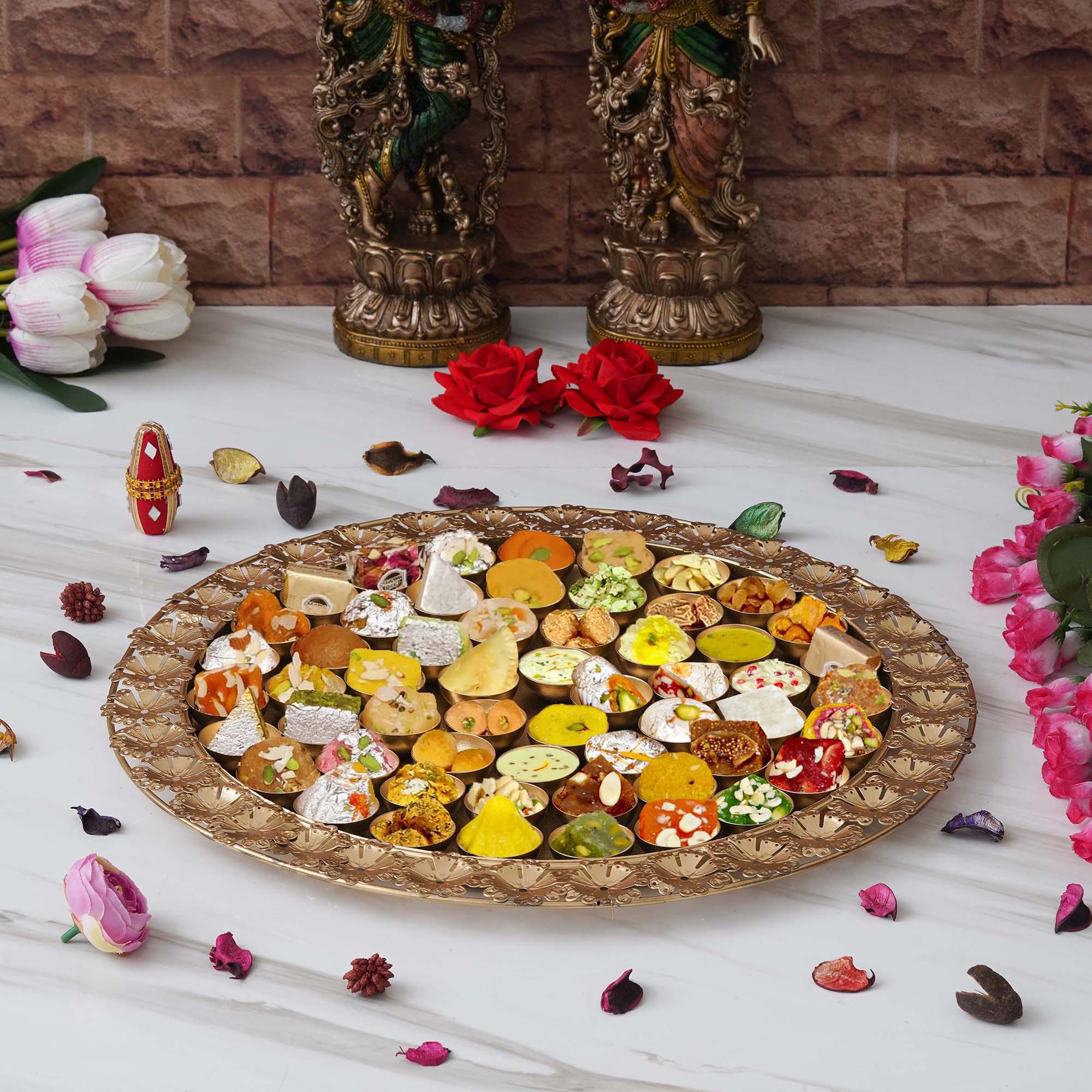Webelkart Premium Flowers Chappan Bhog Thali/ Decorative Poojan Thali for Temple and Pooja Room Decor- Traditional Pooja Thali,56 Bhog Thali for laddu Gopal ( 15.5 Inches)
