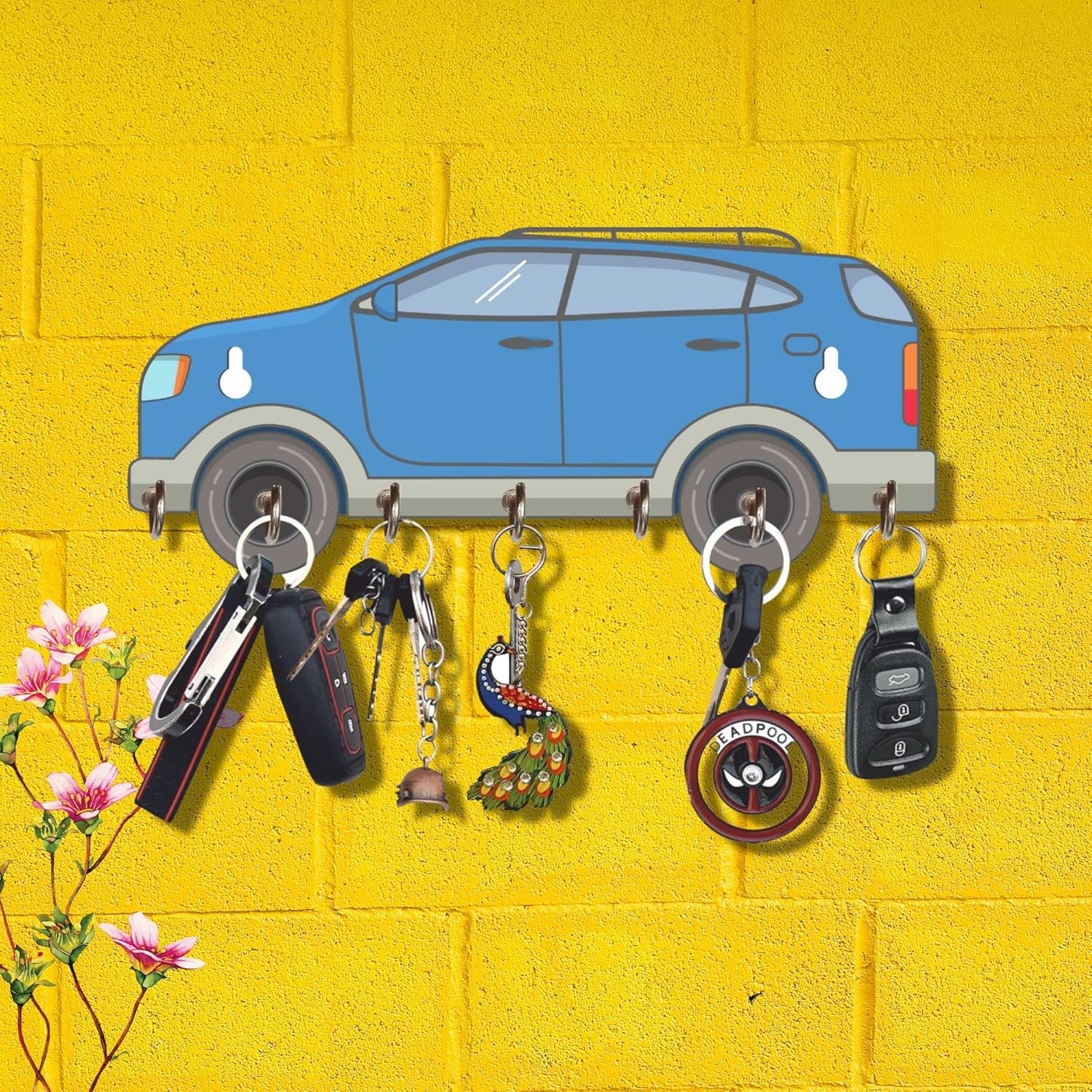 Webelkart Premium HD UV Printed Retro SUV Shaped Keys Wooden Key Holder (12 Inch x 5 Inch, Wood, Multicolor)- 7 Hooks