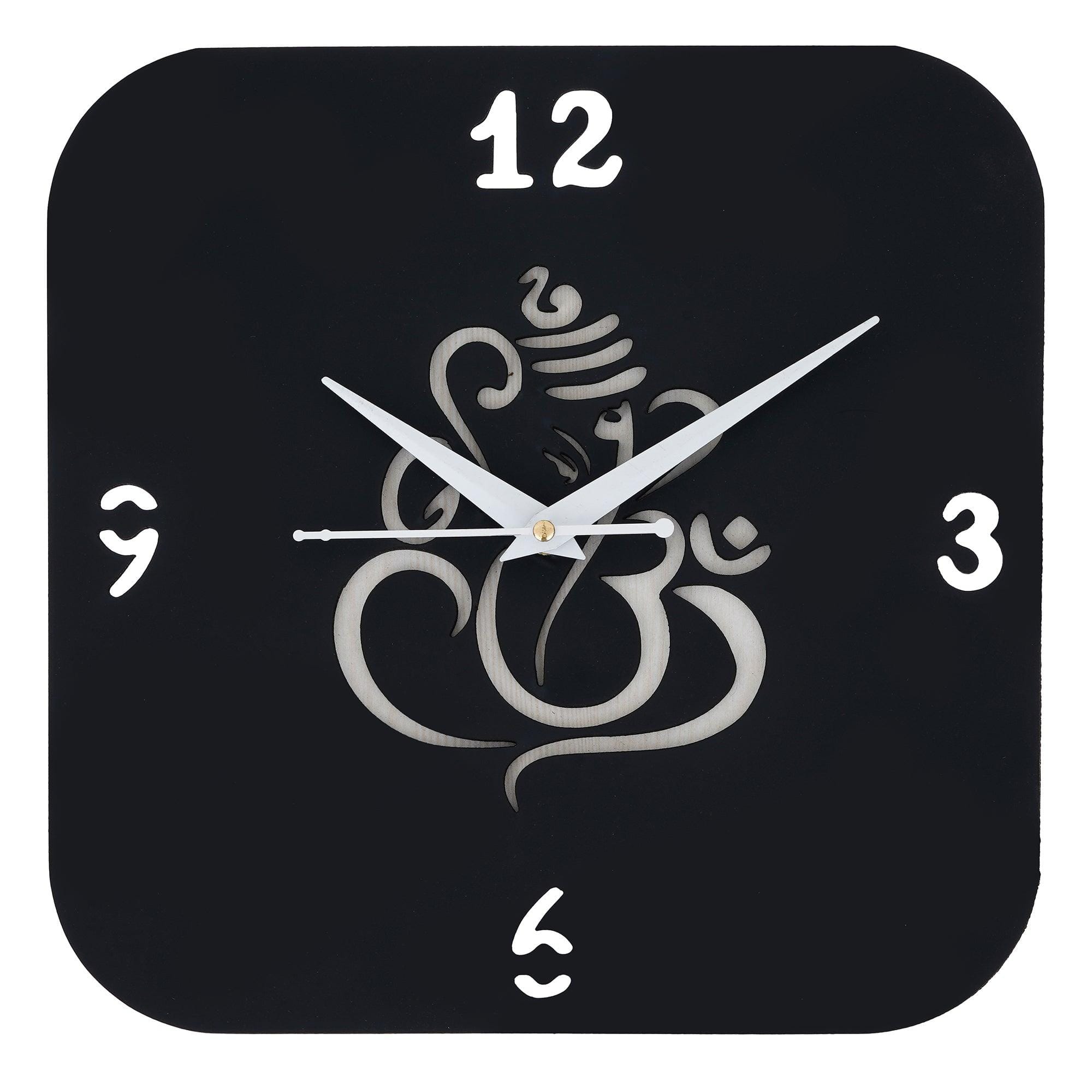 Webelkart Premium Lord Ganesha Mural Wooden Wall Clock for Home and Office Decor ( 11 Inches, Black) Without Glass