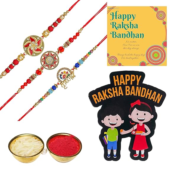 Webelkart Premium Combo Of 3 Rakhi With Happy Raksha Bandhan Magnet For Bhaiya And Bhabhi.Rakhi For Brother And Sister With Greeting Card And Roli Chawal Pack. Rakhi Gift For Couple,Rakhi Set