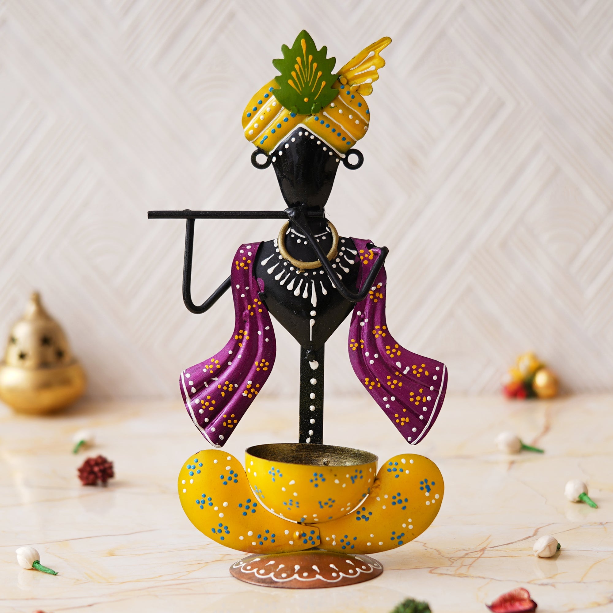 Webelkart Premium Handcrafted Multicolor Metal Krishna Tea Light Holder for Home & Office Decor and Diwali Gift Item (Multicolor-10.4" Inches)
