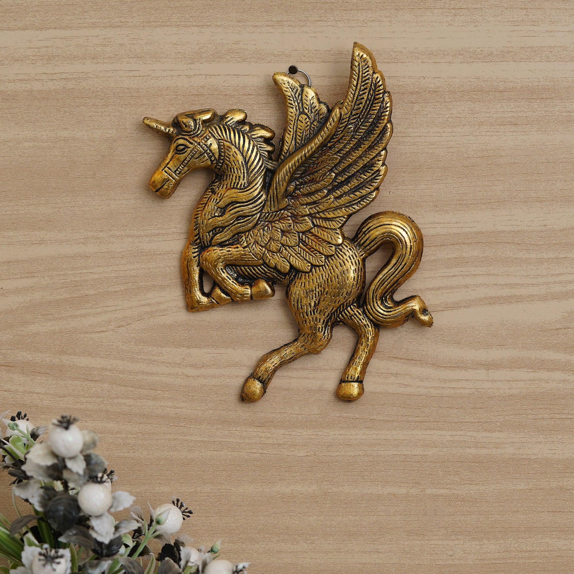 JaipurCrafts Premium HandiCrafted Metal Flying/Running Horse Statue Wall Hanging For Home And Office Decor ( 7.5 Inches)