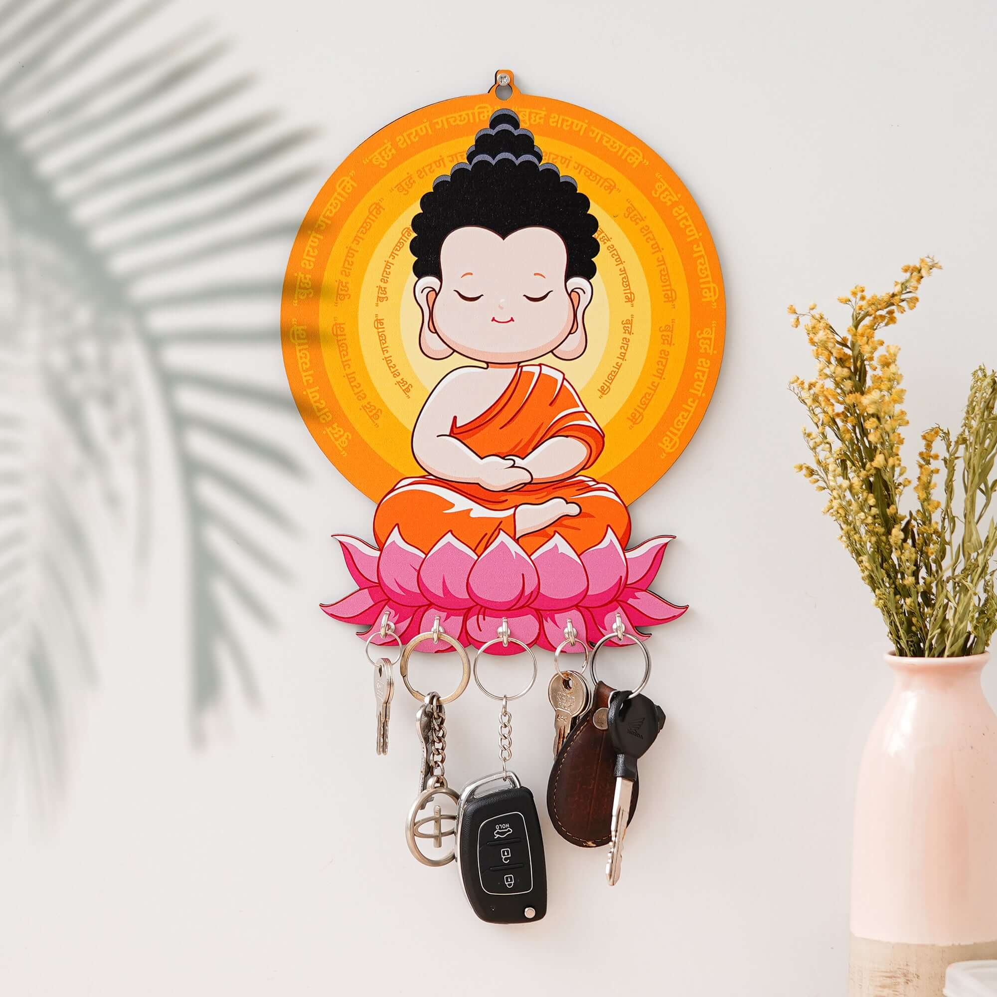 JaipurCrafts Premium Child Gautam Buddha Printed Wooden Key Holder for Home and Office Decor- Home Decor Items for Wall, Key Stand for Wall (Multi, 10 inches)