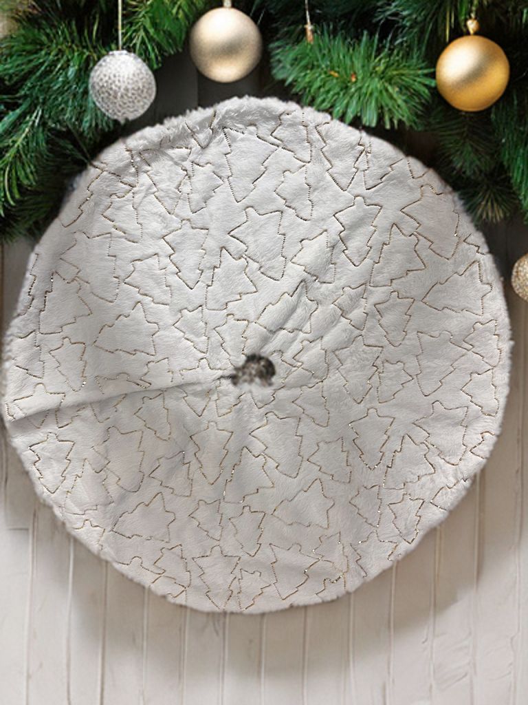 Christmas Sequin Tree Skirt 34in,White Soft Thick with Golden Tree Decorations for 5FT 6FT 7FT Xmas Tree