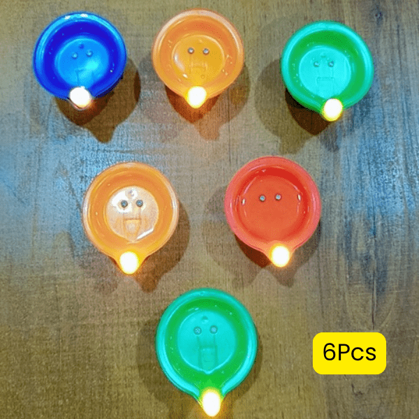 Effortless Illumination and Long-Lasting EnjoymentWater Sensor Technology: Say goodbye to messy wax and flickering flames! Our diyas feature a convenient water sensor. Simply place them in a bowl of water, and watch as they illuminate with vibrant colors, creating a mesmerizing ambiance.Long-Lasting LEDs: Powered by replaceable batteries, the diyas feature energy-efficient LEDs that provide hours of worry-free illumination. Enjoy beautiful, colorful lighting without the constant need for replacements.Unleash a Spectrum of ColorsColorful LED Lights: Unlike traditional diyas, these water sensor diyas boast a captivating display of color. The LEDs cycle through a range of hues, creating a dynamic and visually stunning lighting effect.Enhance Your Decor: Elevate your home décor with the vibrant glow of these colorful diyas. They add a touch of magic to any setting, be it a festive occasion, a relaxing evening, or a meditative space.Versatility for Every OccasionPack of Six: This set includes 6 diyas, allowing you to create a captivating display or share the magic with friends and family.Lightweight and Portable: The compact size and lightweight nature of the diyas make them ideal for various settings. Take them with you to parties, use them as everyday centerpieces, or create a unique atmosphere during meditation.Festive Flair: These colorful water sensor diyas are a perfect addition to any festive occasion. From Diwali celebrations to birthdays and weddings, they create a beautiful and unique lighting experience.Sustainable and Safe ChoiceCool Glow: The LED lights provide a safe and cool glow, eliminating fire hazards associated with traditional candles.Eco-Friendly: Replacing traditional candles with these reusable LED diyas is a more sustainable choice for the environment.A Gift that Keeps on GivingUnique and Thoughtful: The 6pcs Colorful Water Sensor Diyas make a unique and delightful gift for any occasion. They are perfect for Diwali celebrations, housewarmings, or anyone who appreciates beautiful and innovative home décor.Perfect for All Ages: The mesmerizing colors and water sensor technology appeal to a wide audience. From children who will be captivated by the vibrant glow to adults seeking a relaxing ambiance, this product offers something for everyone.Available Bank offers