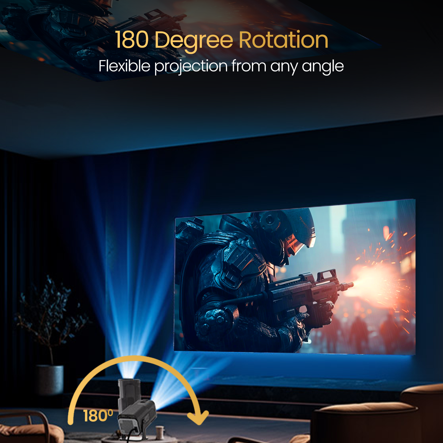 - Bright and Sharp Visuals: The projector’s 1080p Full HD resolution and 4500 lumens brightness, ensure that your movies, shows, sports, etc. are always displayed in high-definition quality and impressive brightness, even in well-lit spaces.
