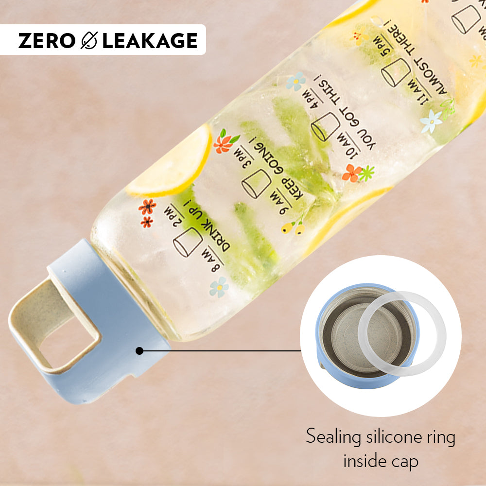Borosil AM-PM Glass Bottle w Husk Lid, Blue