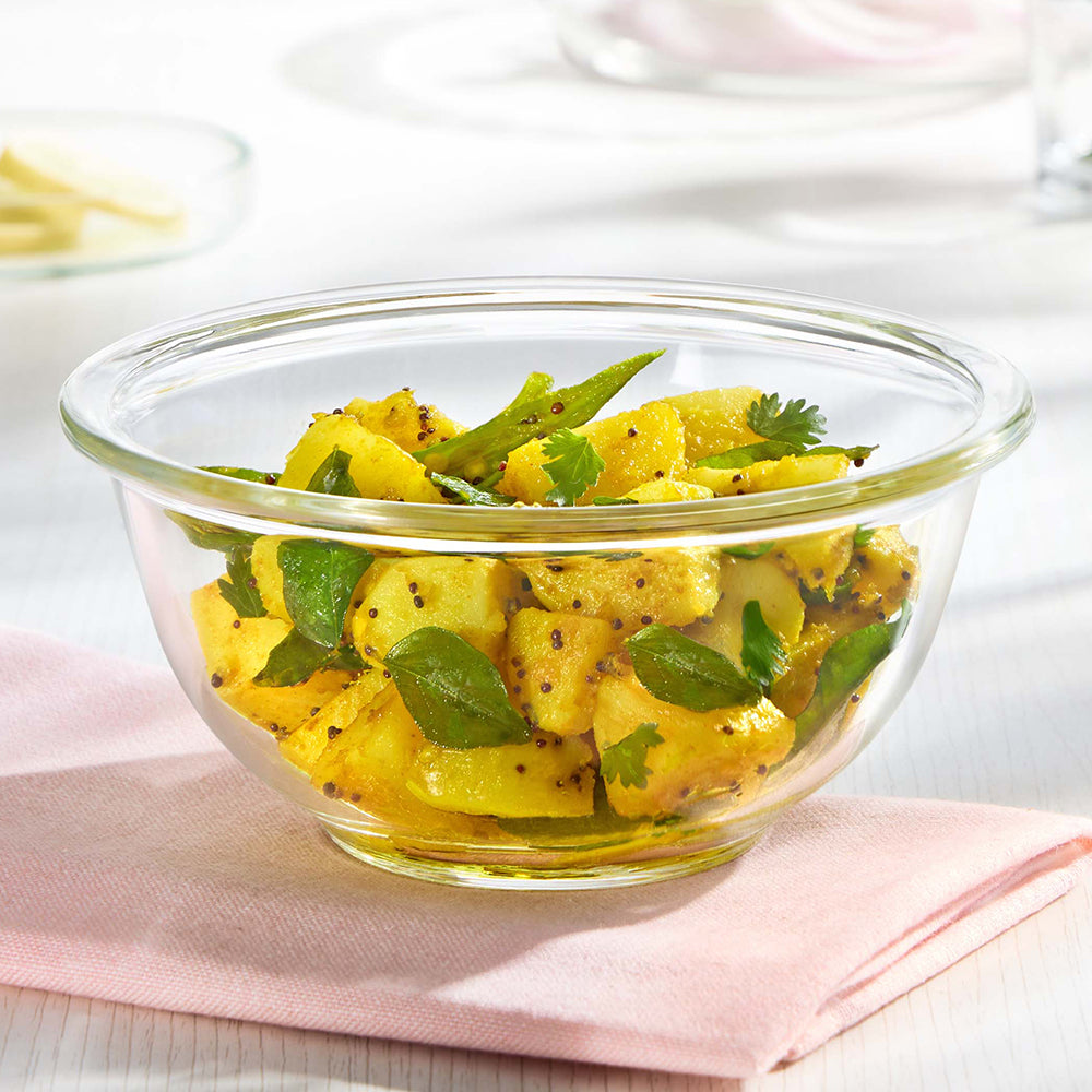 Our Mixing Bowls are truly multipurpose - they are ideal for preparing and serving biryanis, dal, subzis, raita, pasta, noodles and salads - whether for daily use or parties. Because Borosil's high quality borosilicate glass is able to withstand temperatures of up to 350Â °C, you can even use these bowls to boil rice and potatoes.