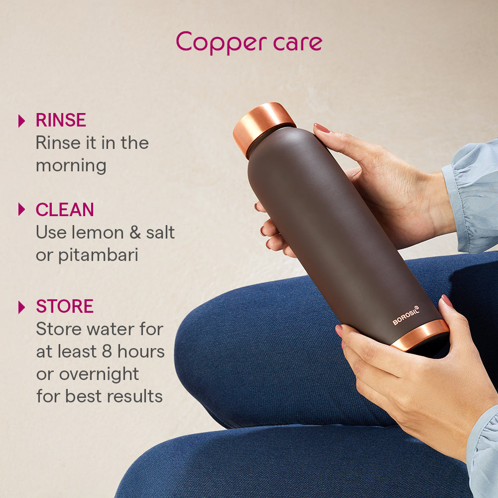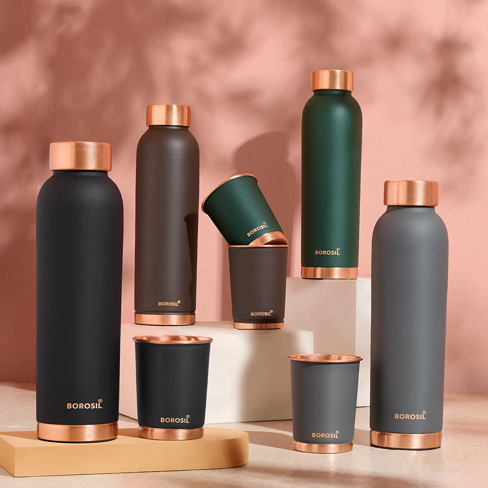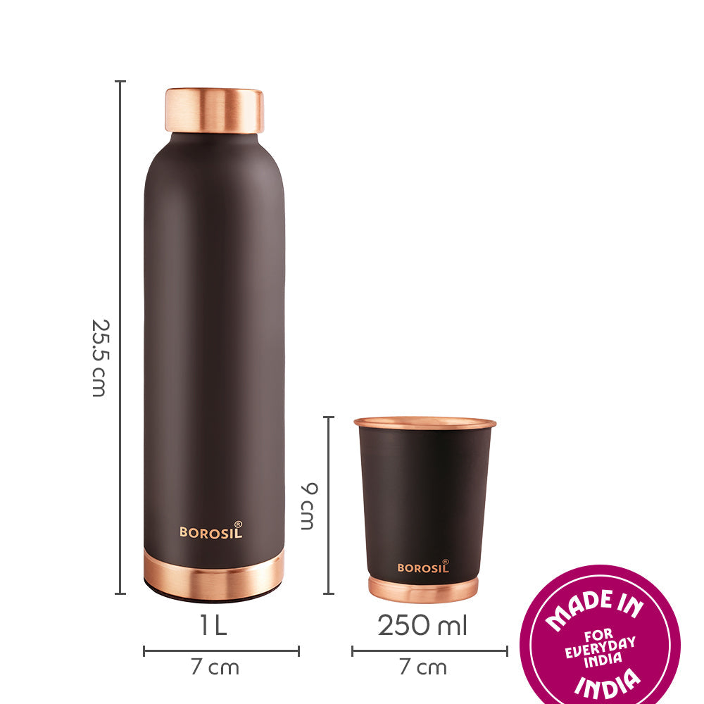 Borosil ECO Colour Copper Bottle & Glass Set, Brown