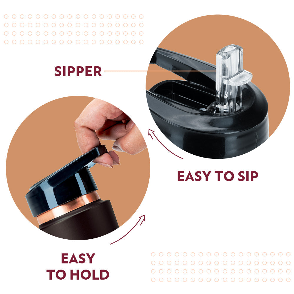 Borosil Sipper Copper Bottle, Brown, 750 ml, Personalised
