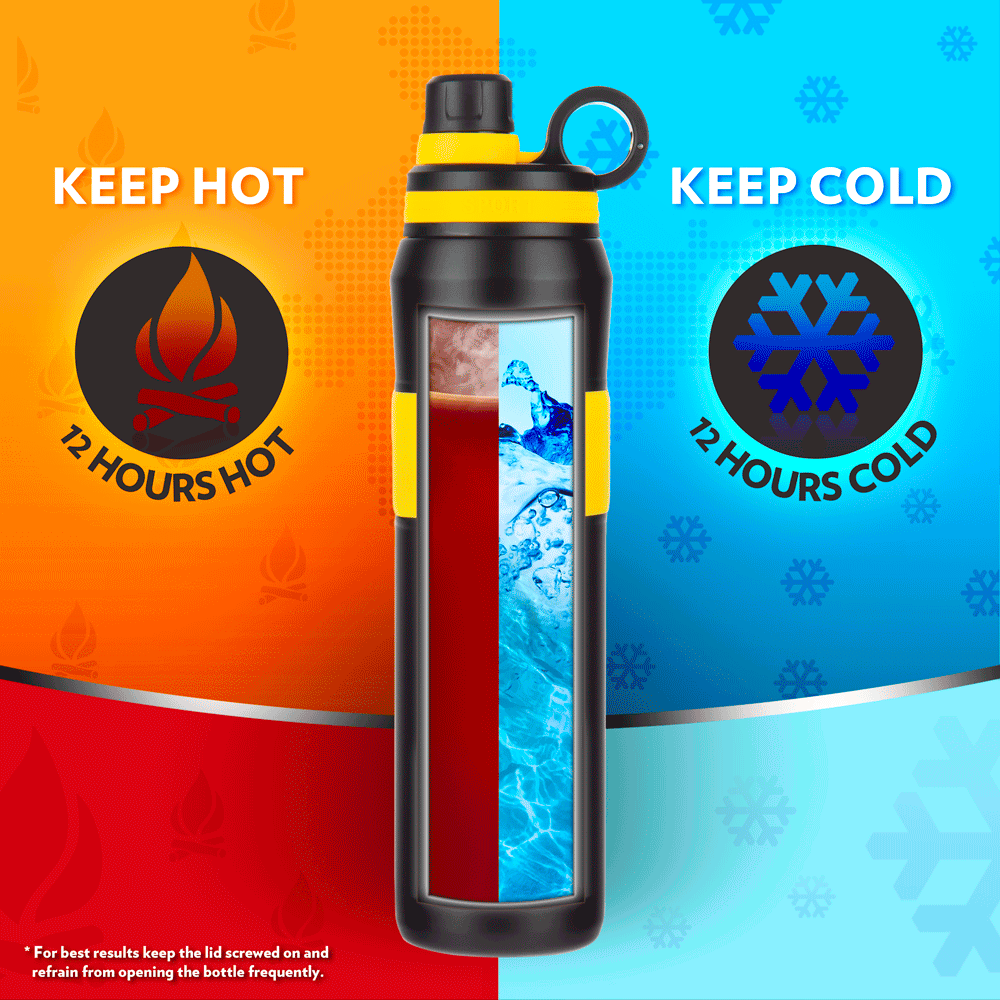 Eclectic design coupled with high performance makes our ThirstBurst range a winner! Double-vacuum insulation with copper coating maintains the optimal temperature of your drink, whether hot or cold for 12 hours, and prevents condensation from forming on the exterior so your bottle does not get slippery. A loop for easy carrying, and a screw top sipper, make the ThirstBurst an easy favourite. Available in a range of colors so everybody is sure to find one they love!