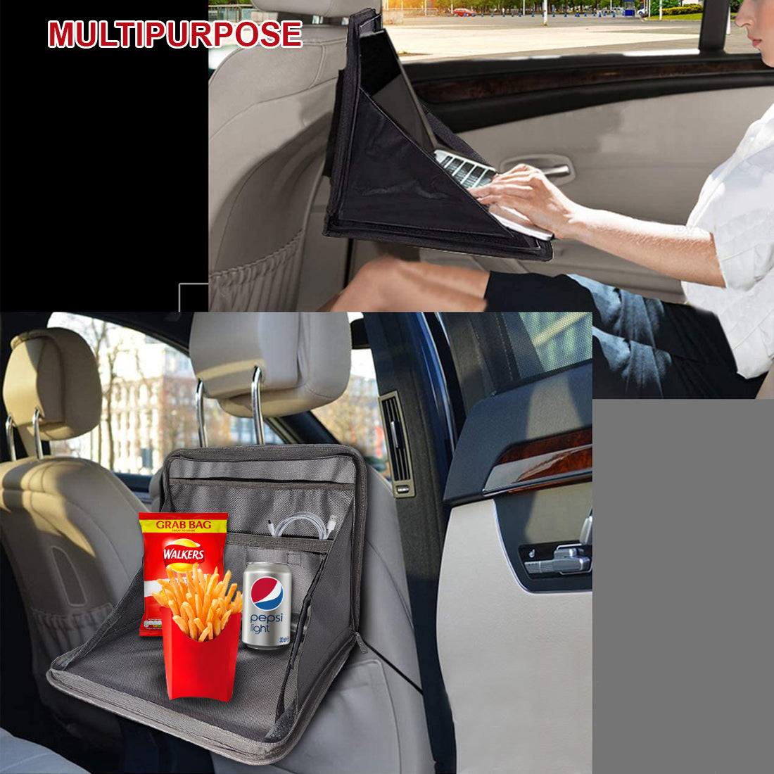 · FOLDABLE TRAY ORGANIZER FOR CAR BACKSEAT: Smiledrive Foldable Car Tray makes working on laptop/tablet or eating a meal in the car convenient.