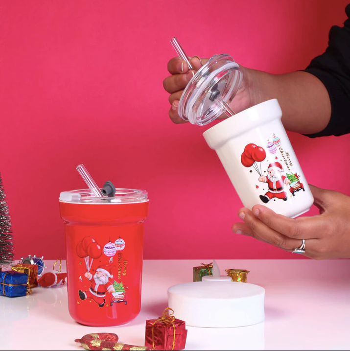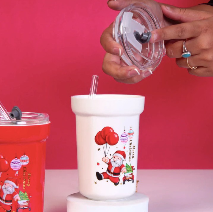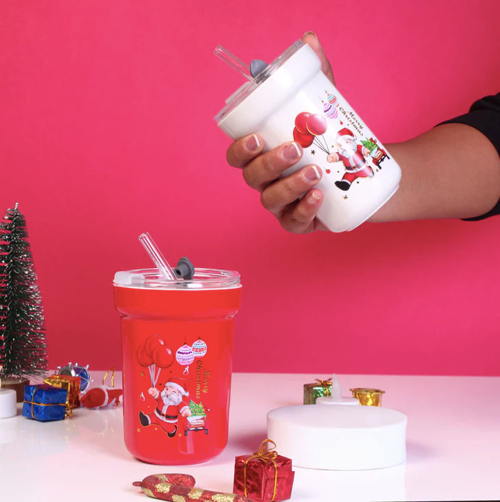 Fill up your kitchen with Christmas vibes. Surprise your kids with cute mugs that will steal their eyes. Embrace this jolly Christmas Travel Mug with your hands! Enjoy your favorite hot or cold beverages with a perfect lid and a handy glass straw. This holiday season, stay hydrated in style!