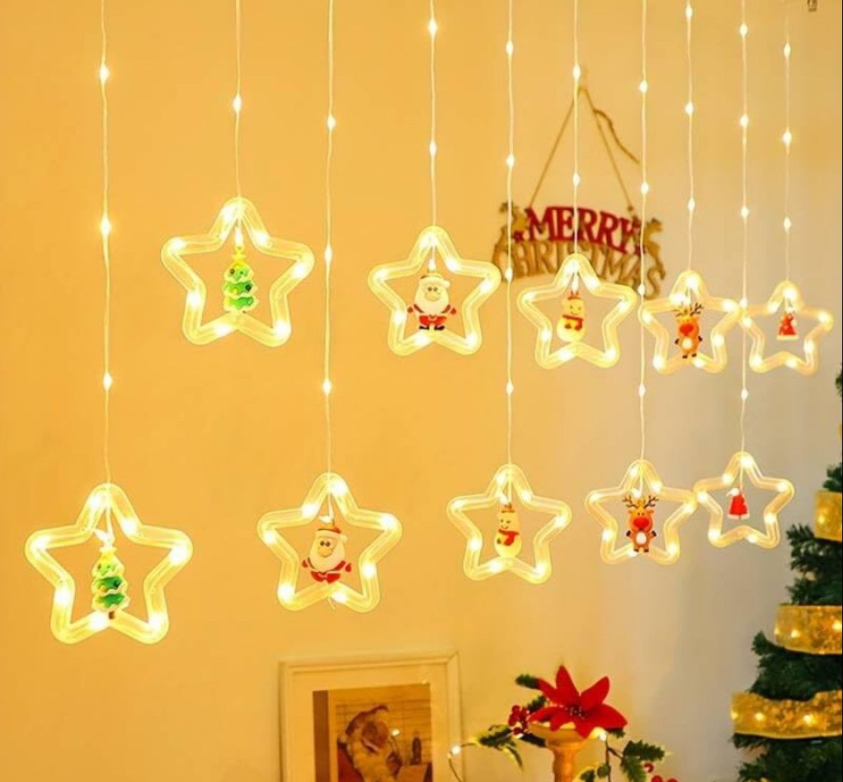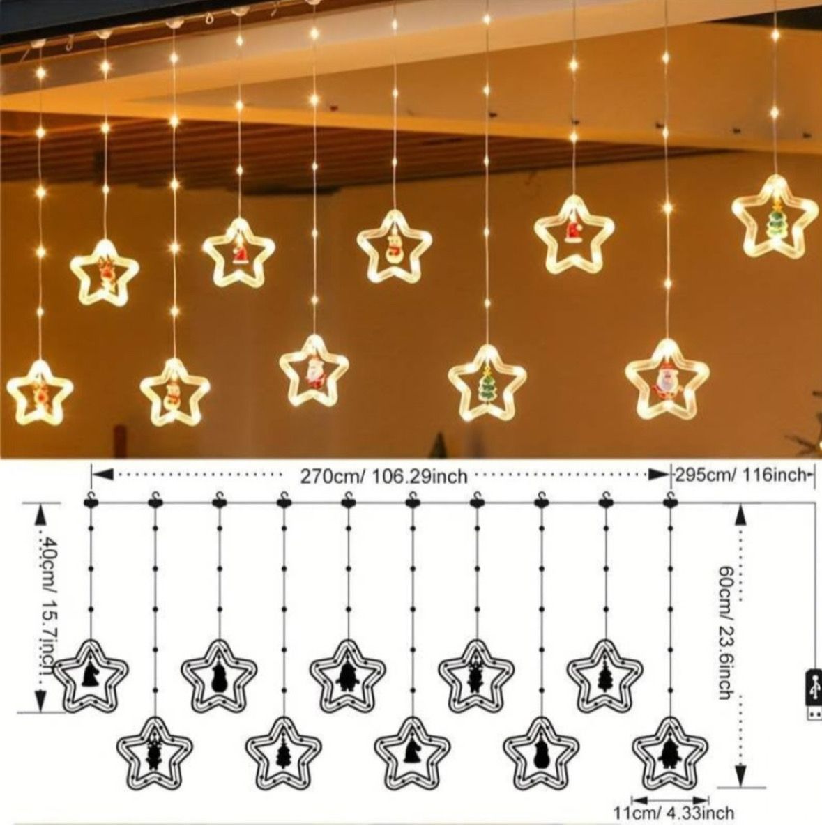 - High-Quality Window Curtain String Lights: The pattern including Christmas tree, stars, elk, the bell lights adopts laser engraving technology, with clear texture, smooth lines, and no burr. the string is 350 cm long
