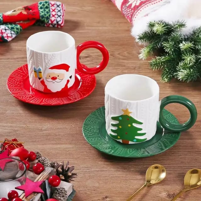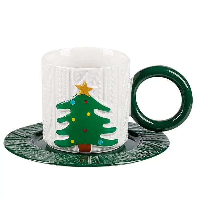 - Embrace the holiday season with our Christmas Tree Christmas Mug and matching Green Saucer.