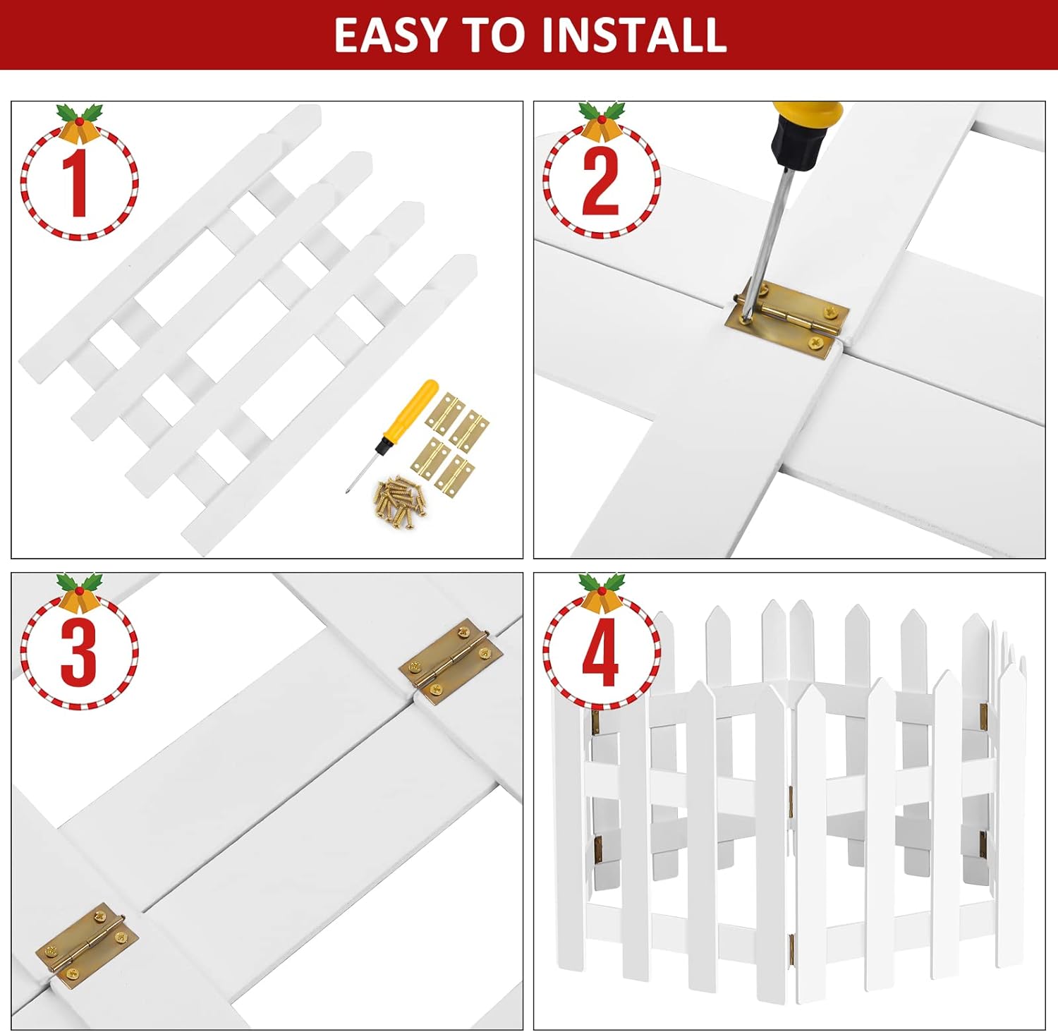 - Easy to Install: these Christmas tree protector from cats are quite easy to assemble and disassemble. The package includes screws and hinges to connect the Christmas tree fence, and also comes with installation tools, so there is no need to buy additional tools.