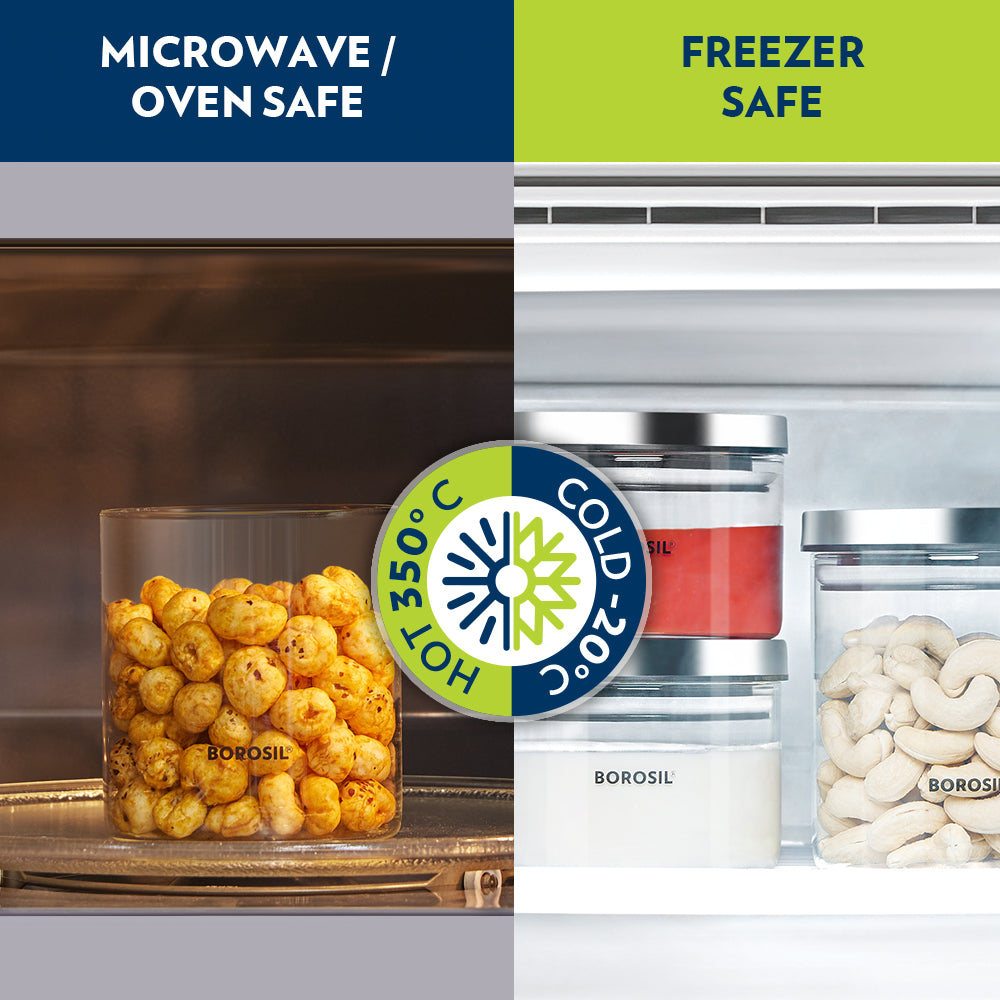 Borosil Tip: Put the jar directly in the oven to freshen up snacks when you have guests drop in!