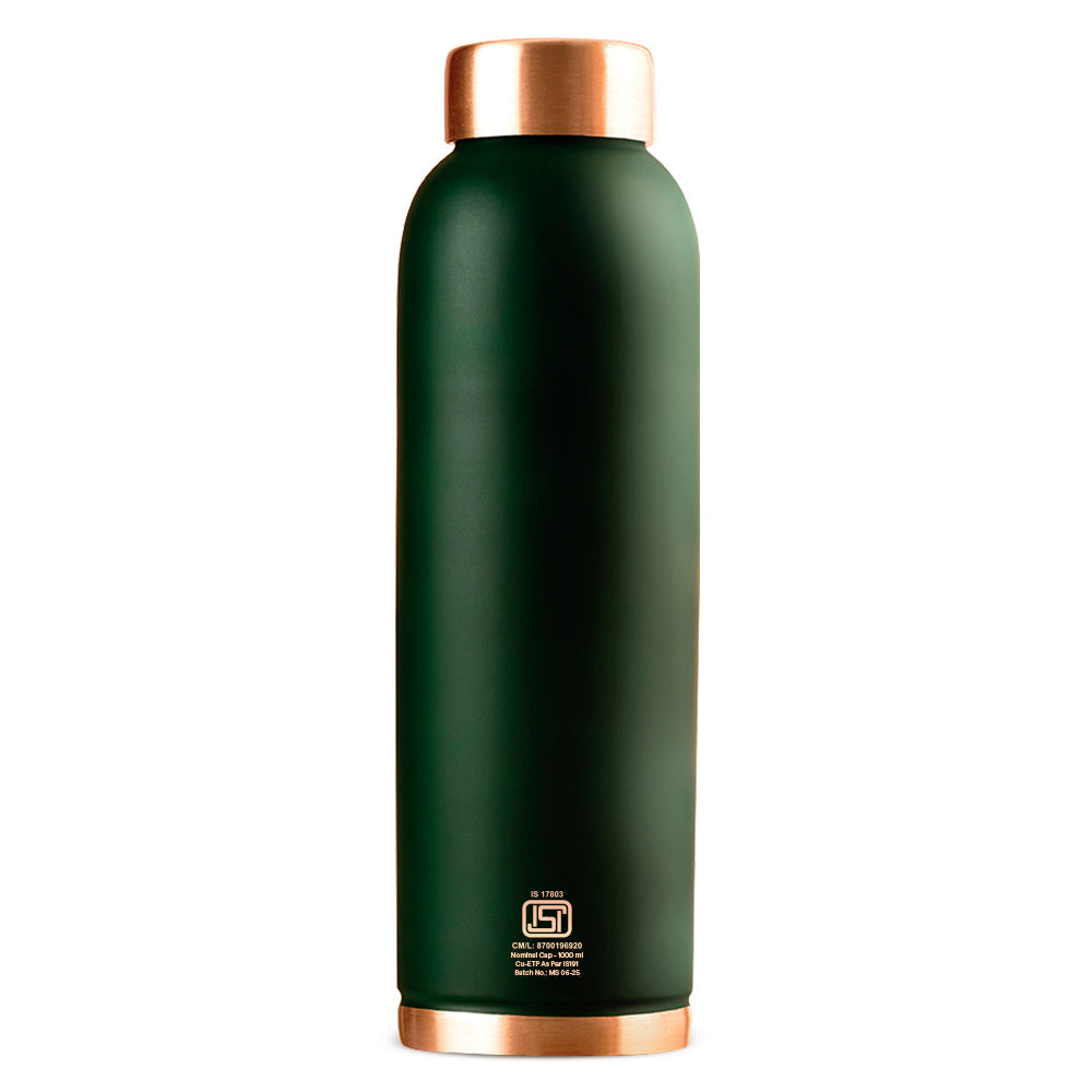 Experience the perfect blend of elegance and wellness with our 1 L Copper Bottle. Meticulously crafted from 100% pure copper, this bottle features a captivating smart matte finish in Grey, Green, Brown, and Black.