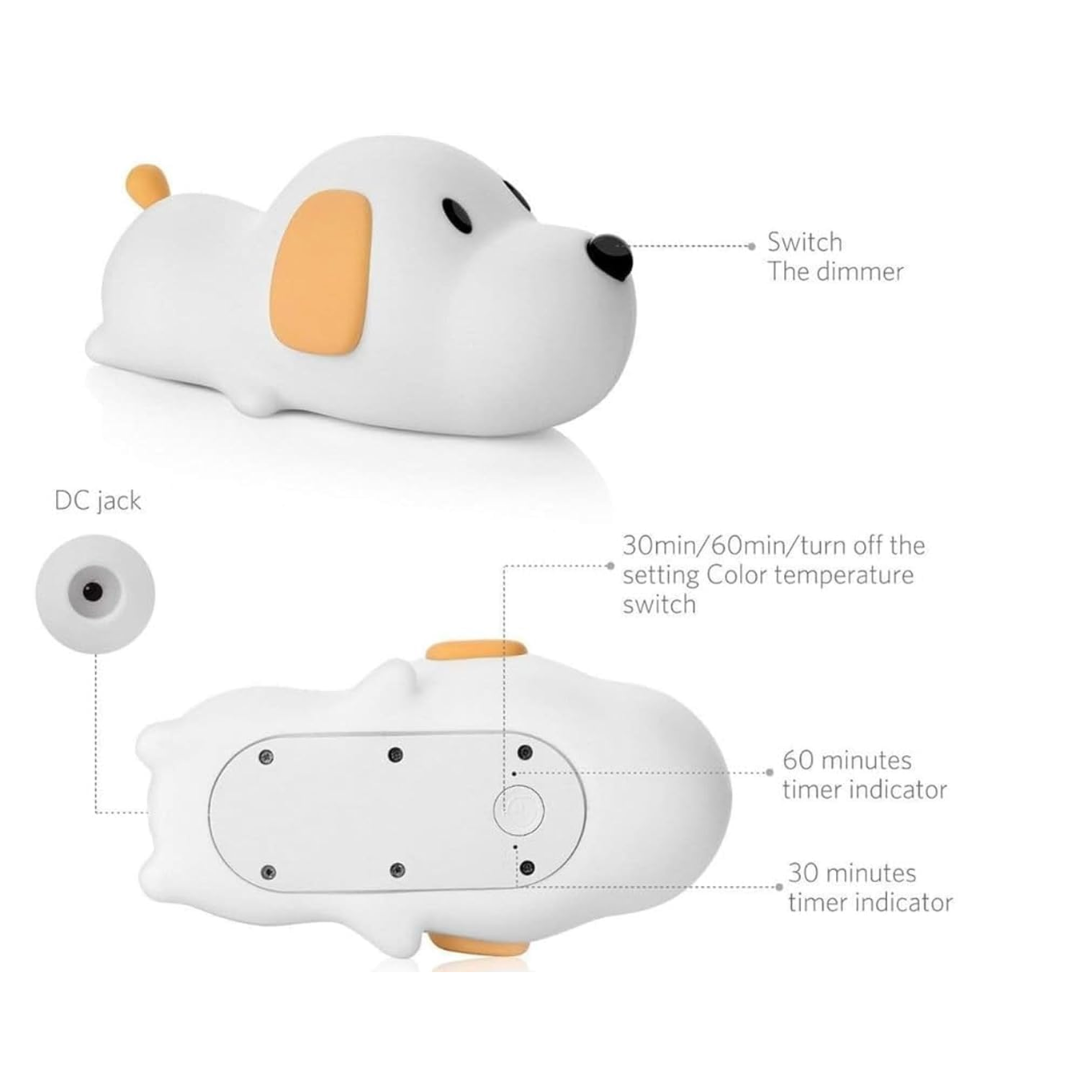 The Cute Silicone Dog Touch Night Lamp brings a charming puppy design and gentle LED light to create a cozy atmosphere in any room. Perfect for children's rooms, nurseries, or any space in need of playful, soothing lighting, this lamp is a fun and safe way to add light while offering a calming glow.
