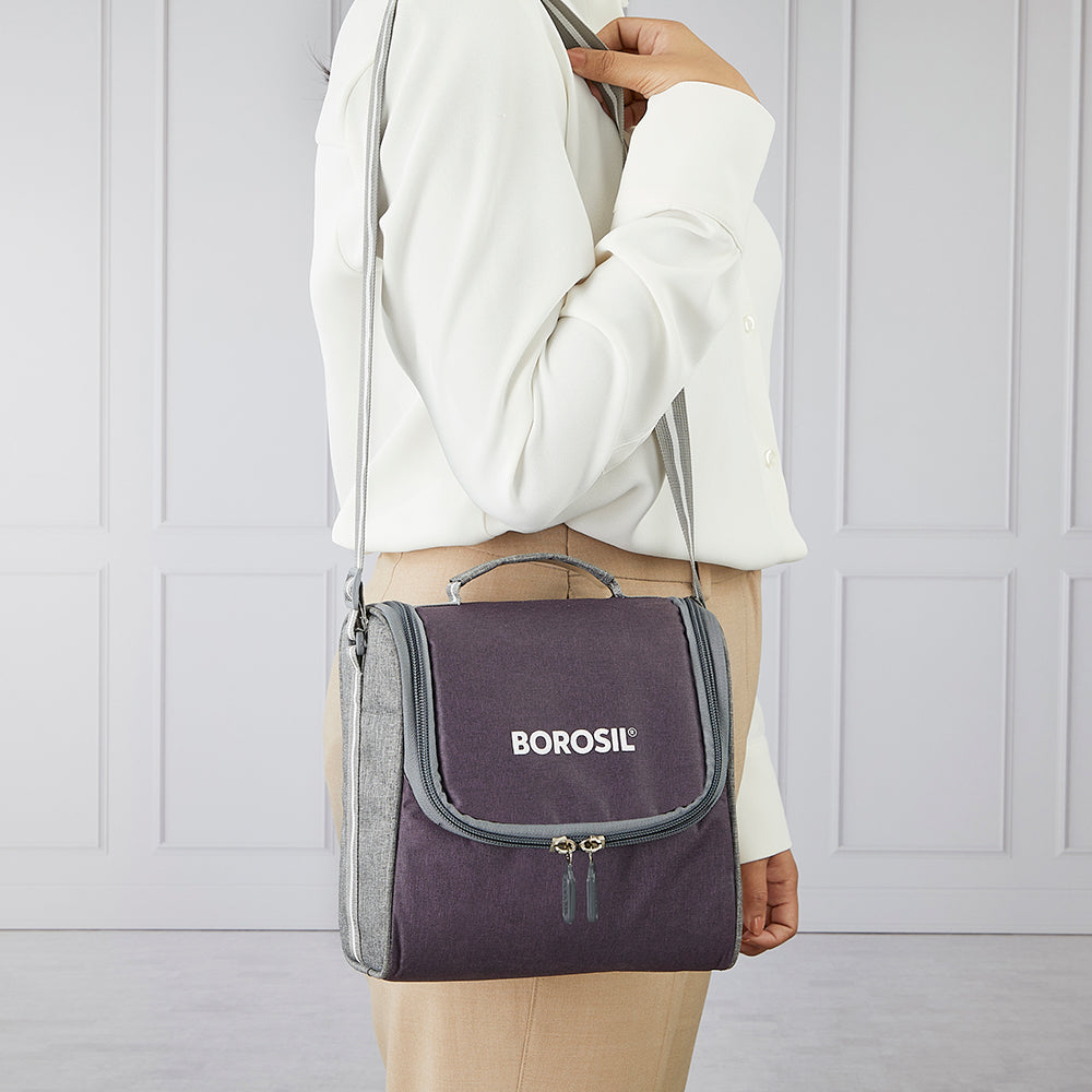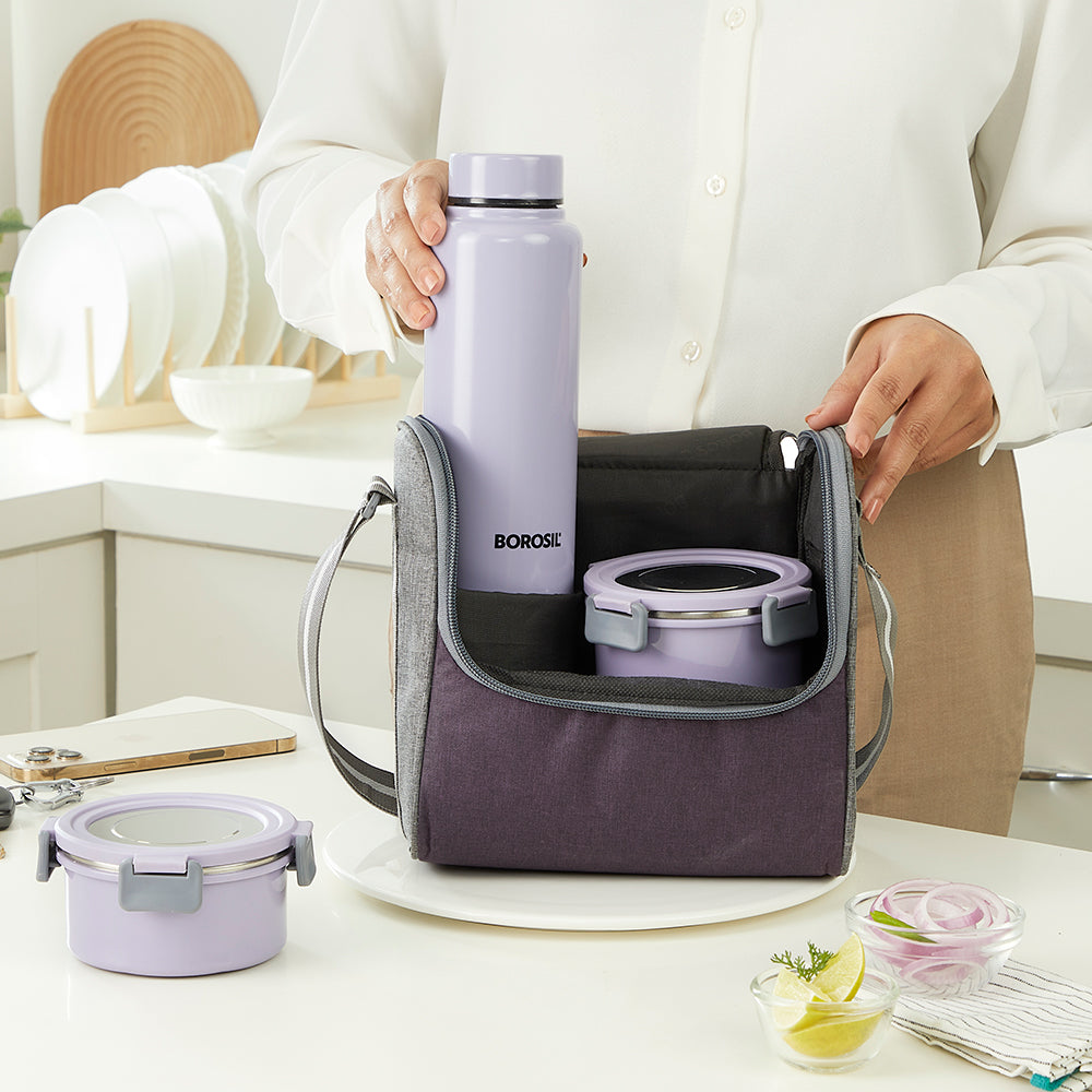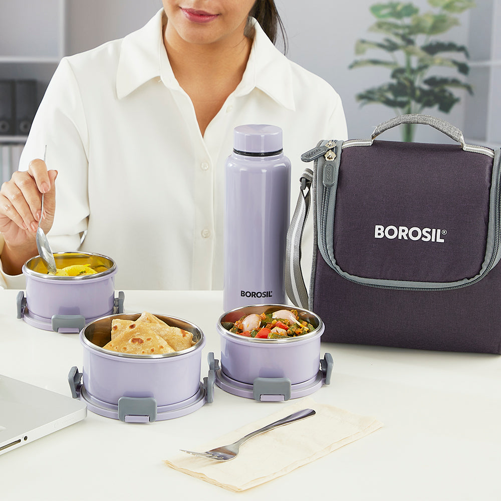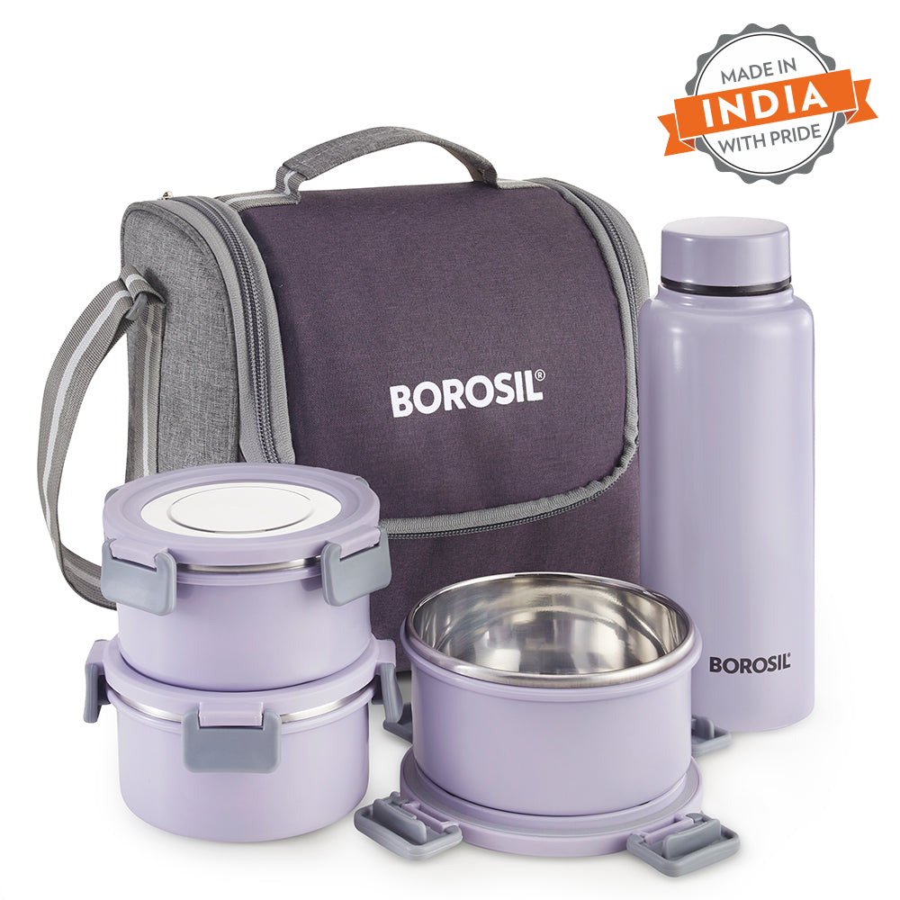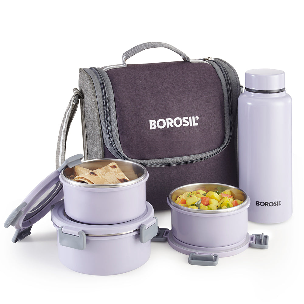 Borosil Glory Lavender Lunchbox w SS Bottle