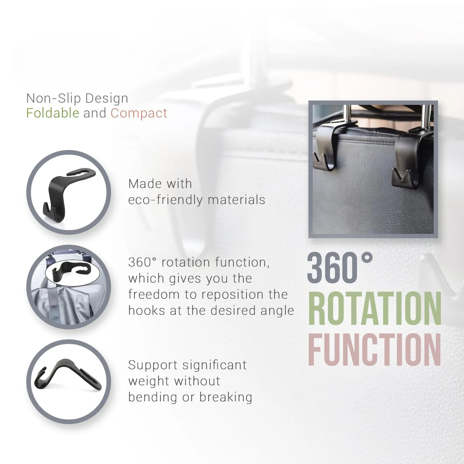The 4-hook pack easily snaps onto your car’s headrest poles—no tools or adjustments needed. The minimalist black design blends with any car interior, offering discreet utility that punches above its weight.