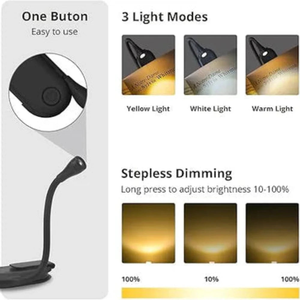 Immerse: Rechargeable Clip-On Book Light & Reading Lamp with 3-Color Modes, Type-C Charging & Flexible Gooseneck Night Reading for Book Lovers