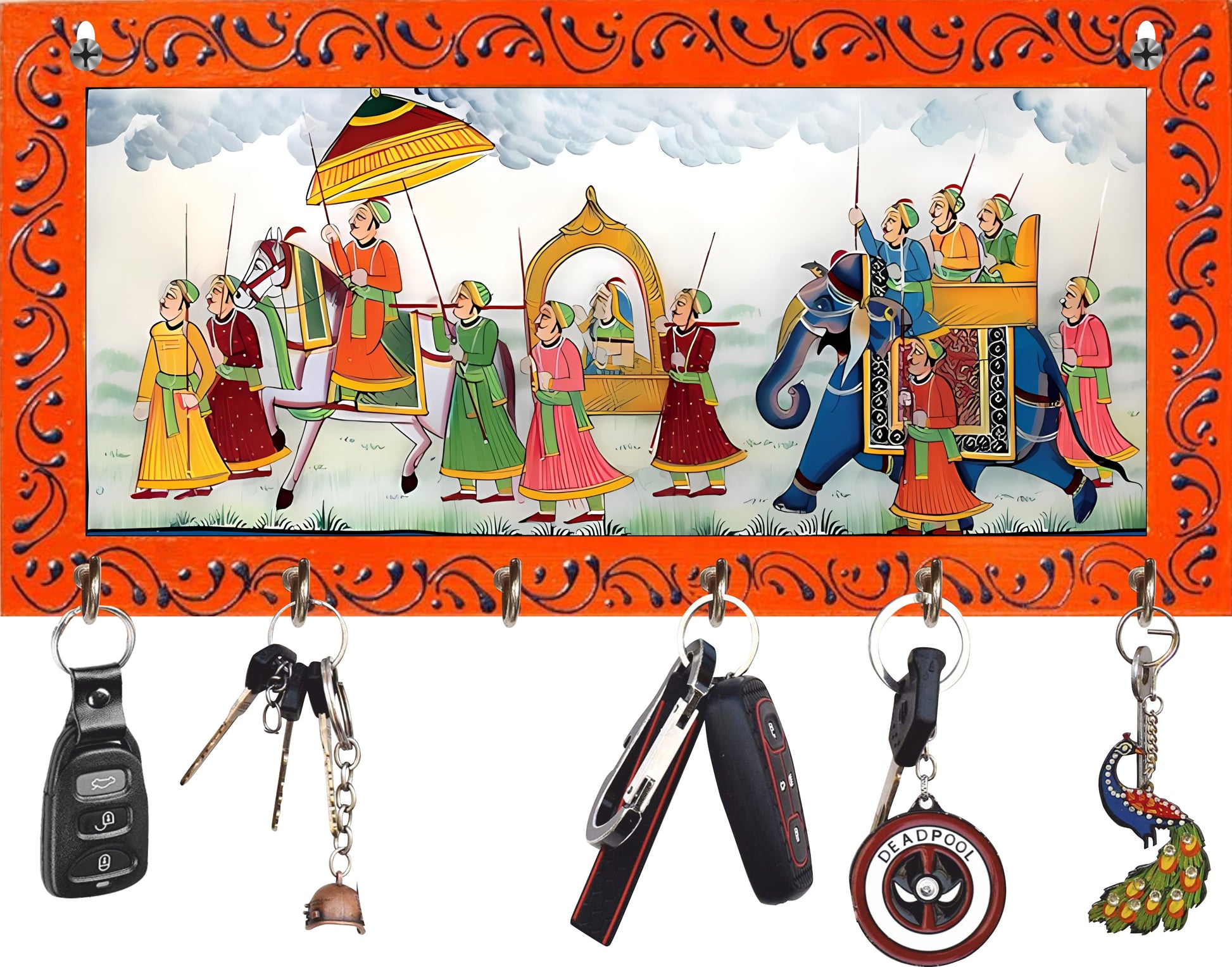 JaipurCrafts Antique HD UV Print Rajasthani Wooden Key Hanger for Home/Office Decor-Wall Decorative Key Holder,Home Decor Item (12x6 Inches)