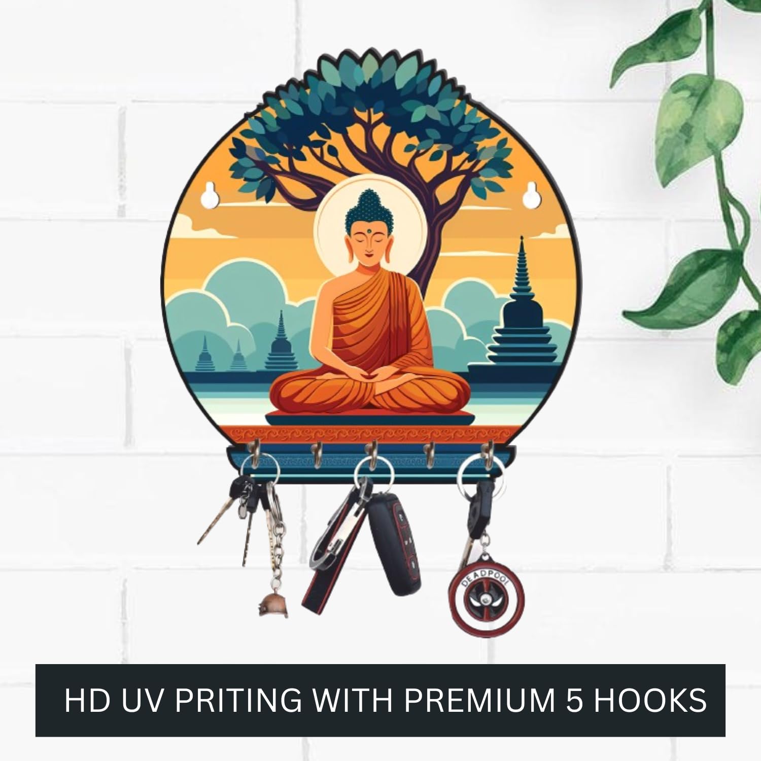 • packagae Contents : meditating gautam buddha Wooden printed key holder
