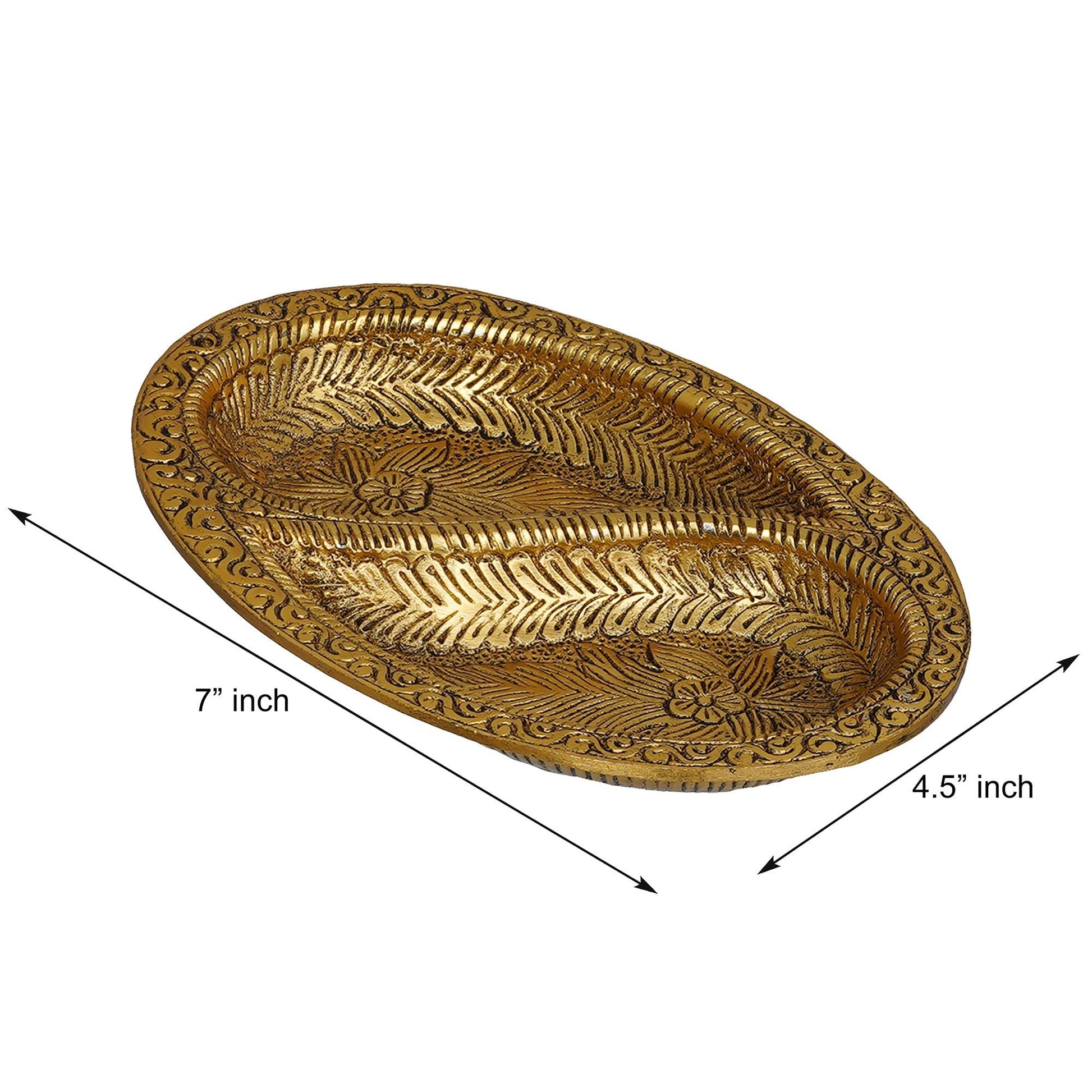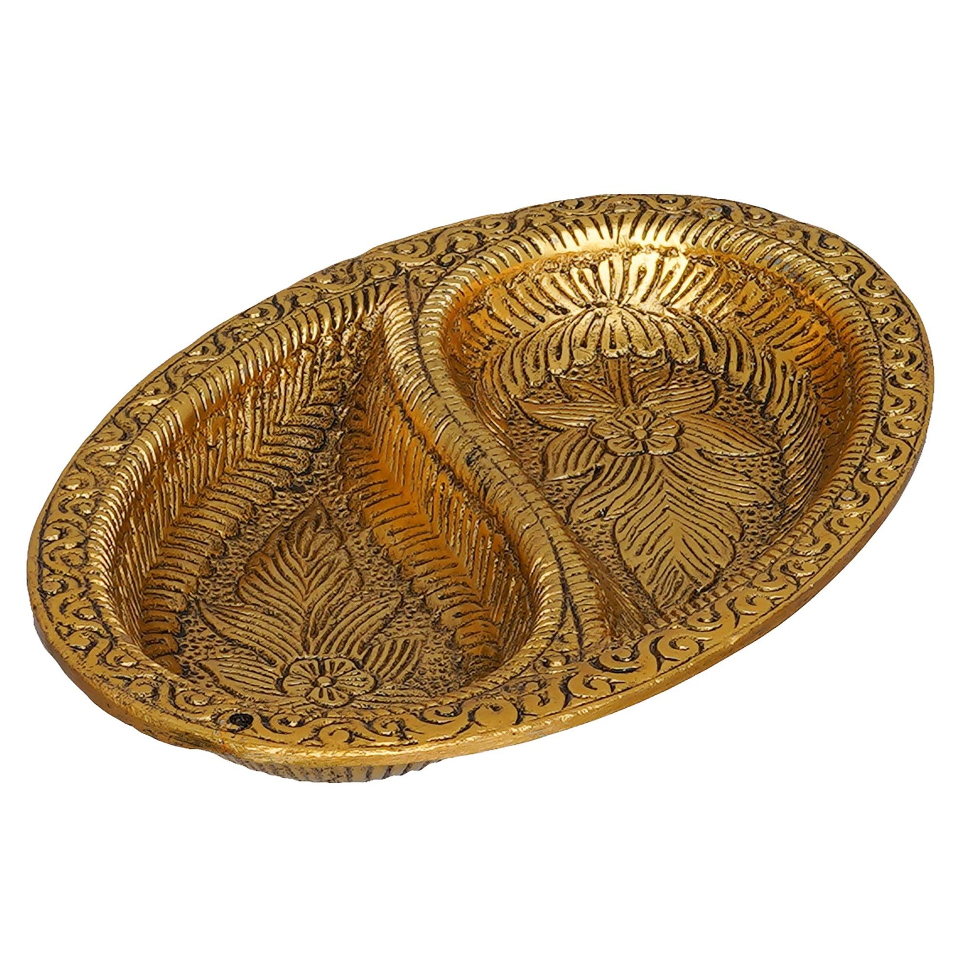 JaipurCrafts Premium Metal Dual Space Dry Fruit Serving Tray, Snacks, Floating Flowers for Home Decoration Table Dining Décor (7 Inches,Gold)