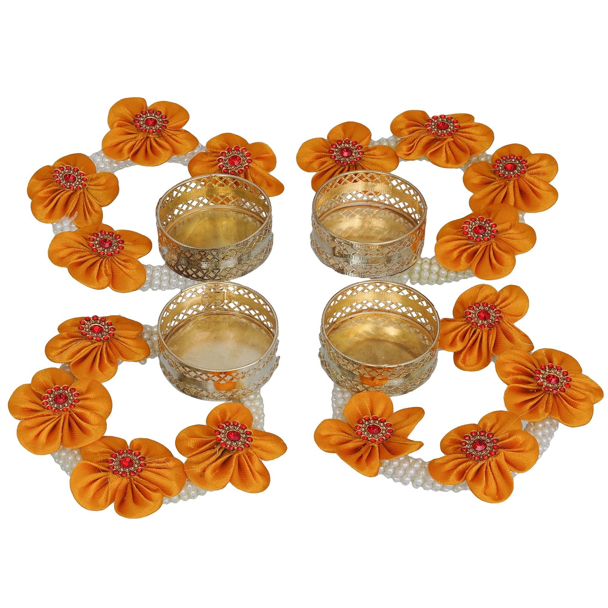 JaipurCrafts Premium Set of 4 Lotus Shape Tealight Candle Holder for Home and Office Decor | tealight Candle Holder for Diwali Decorations | Diwali Candles for Decorations ( 4 Inches)