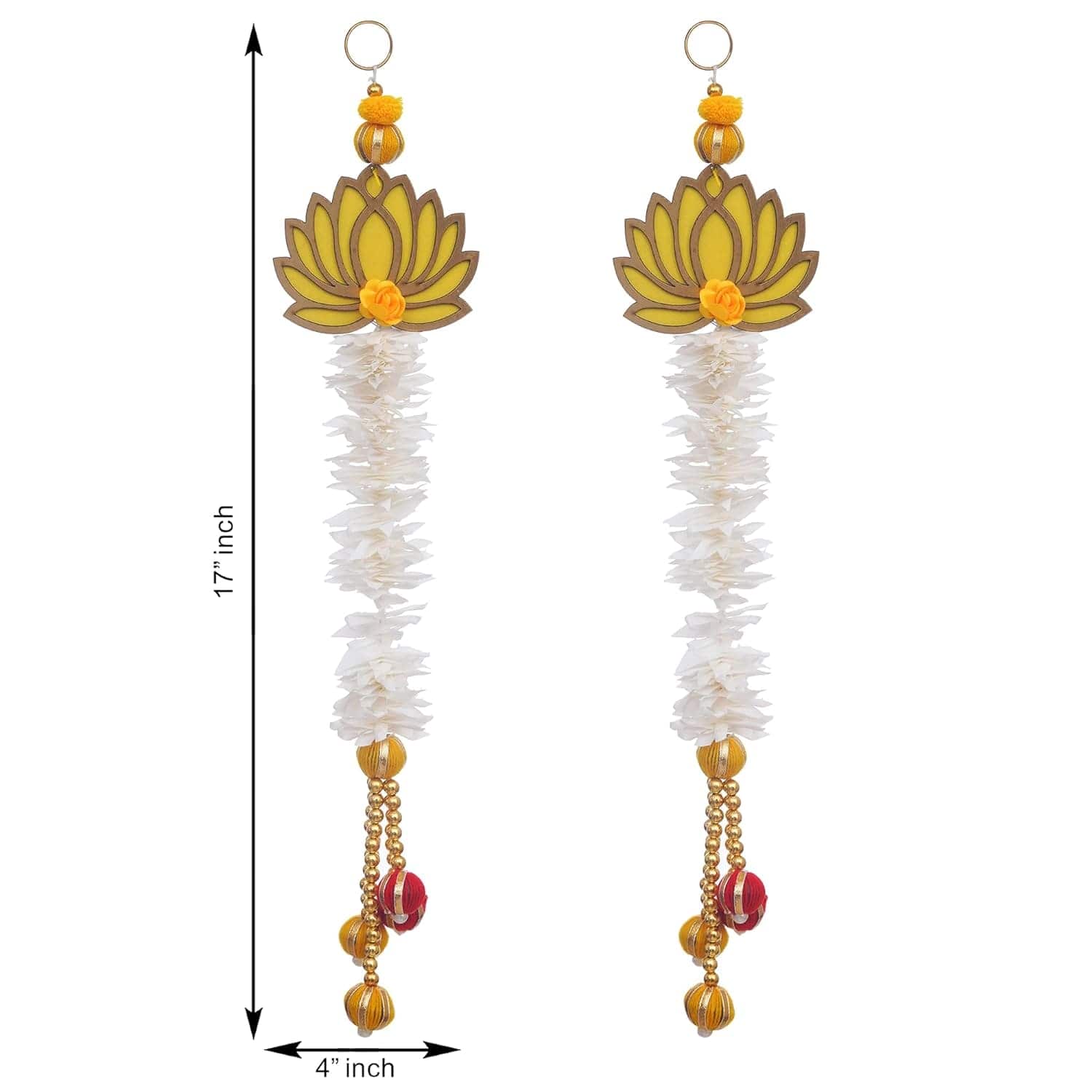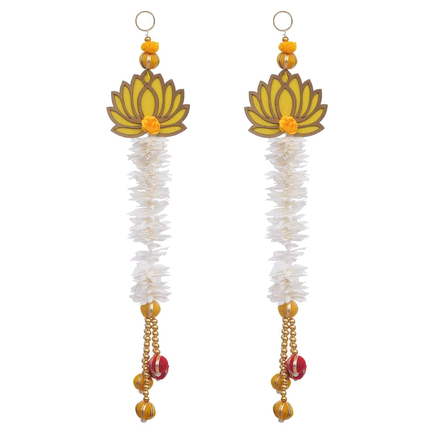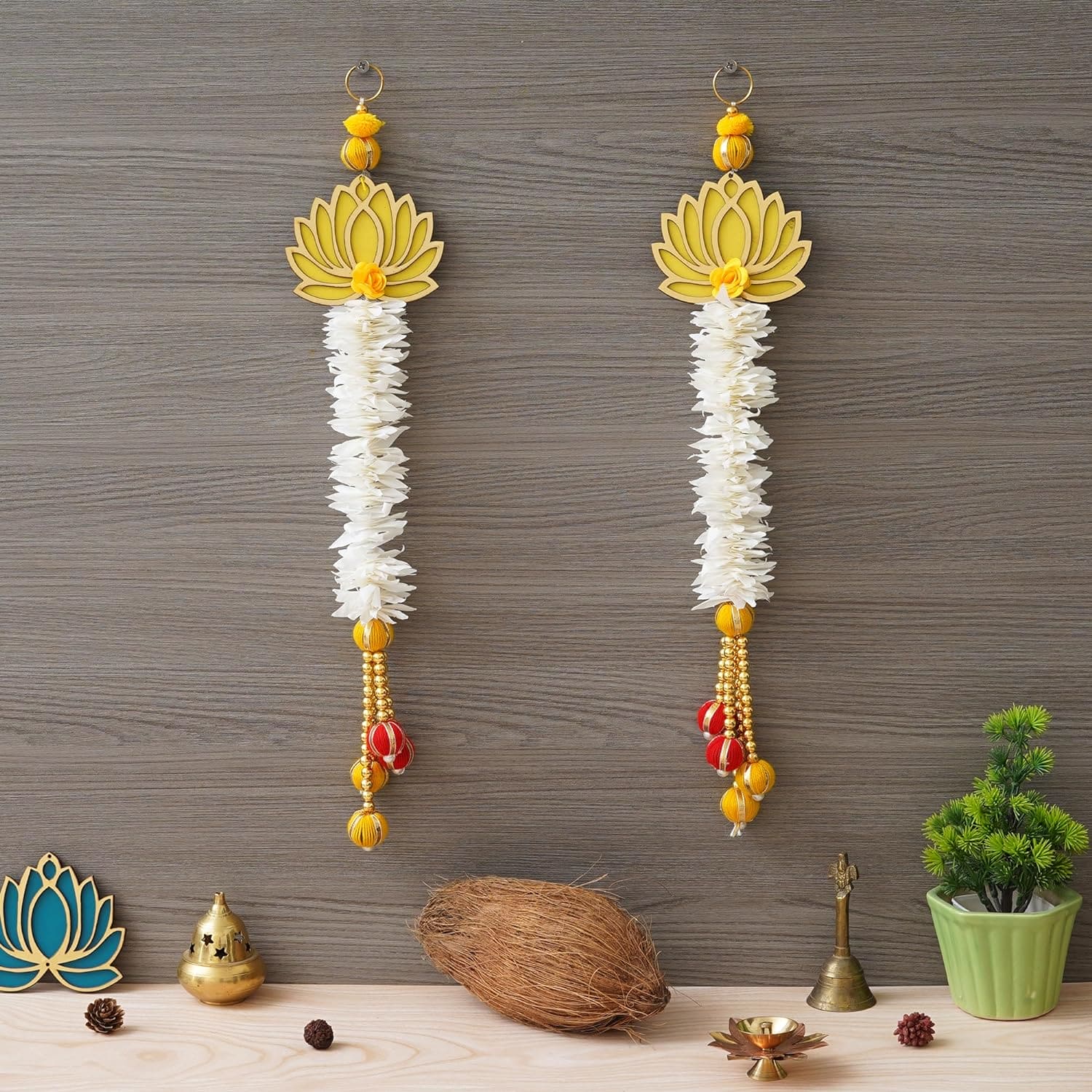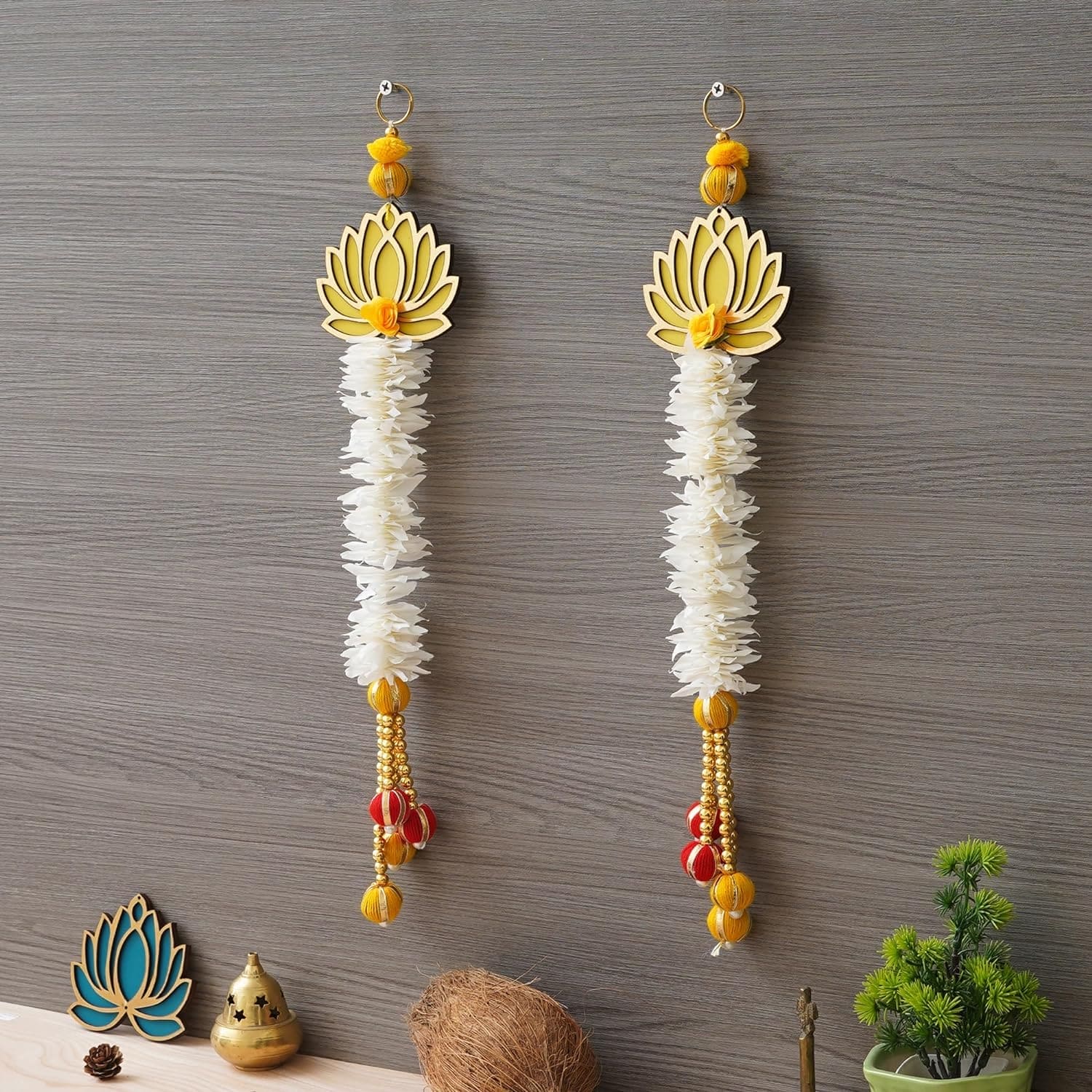 JaipurCrafts Premium Yellow and Gold Lotus Wall Hanging |Lotus Back Drop Hanging | Wall Decor |Temple Decor Home and Office Decor (Set of 2) 17" Inches