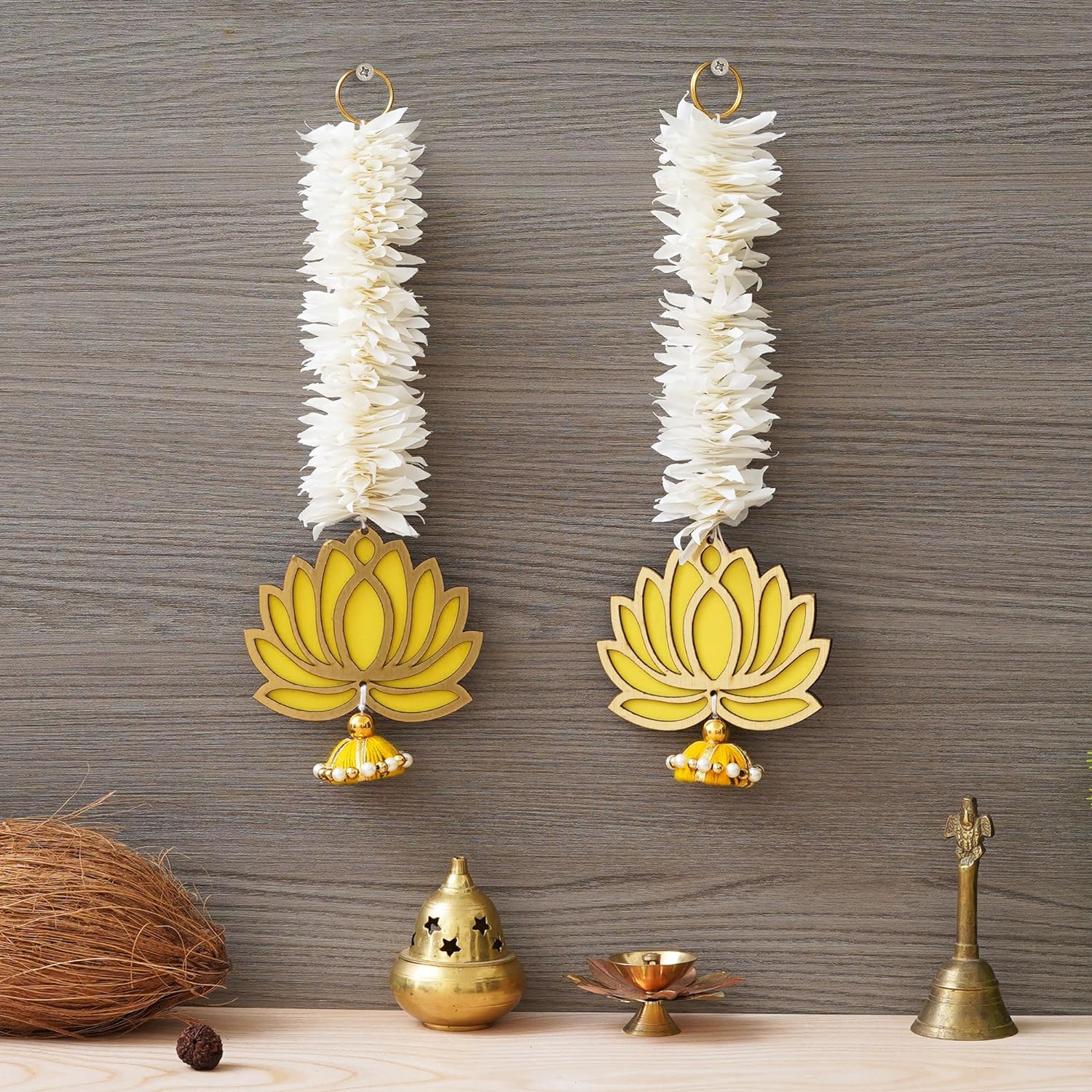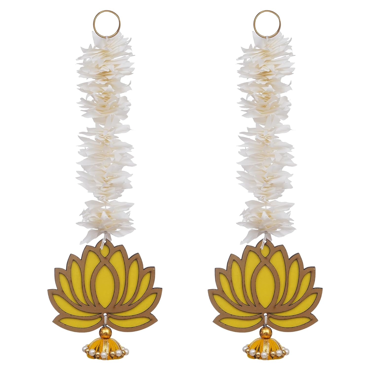 JaipurCrafts Premium Yellow Lotus with White Gajra Flower Wall Hanging |Lotus Back Drop Hanging | Wall Decor |Temple Decor Wall Hanging for Home and Diwali Decorations (Yellow)