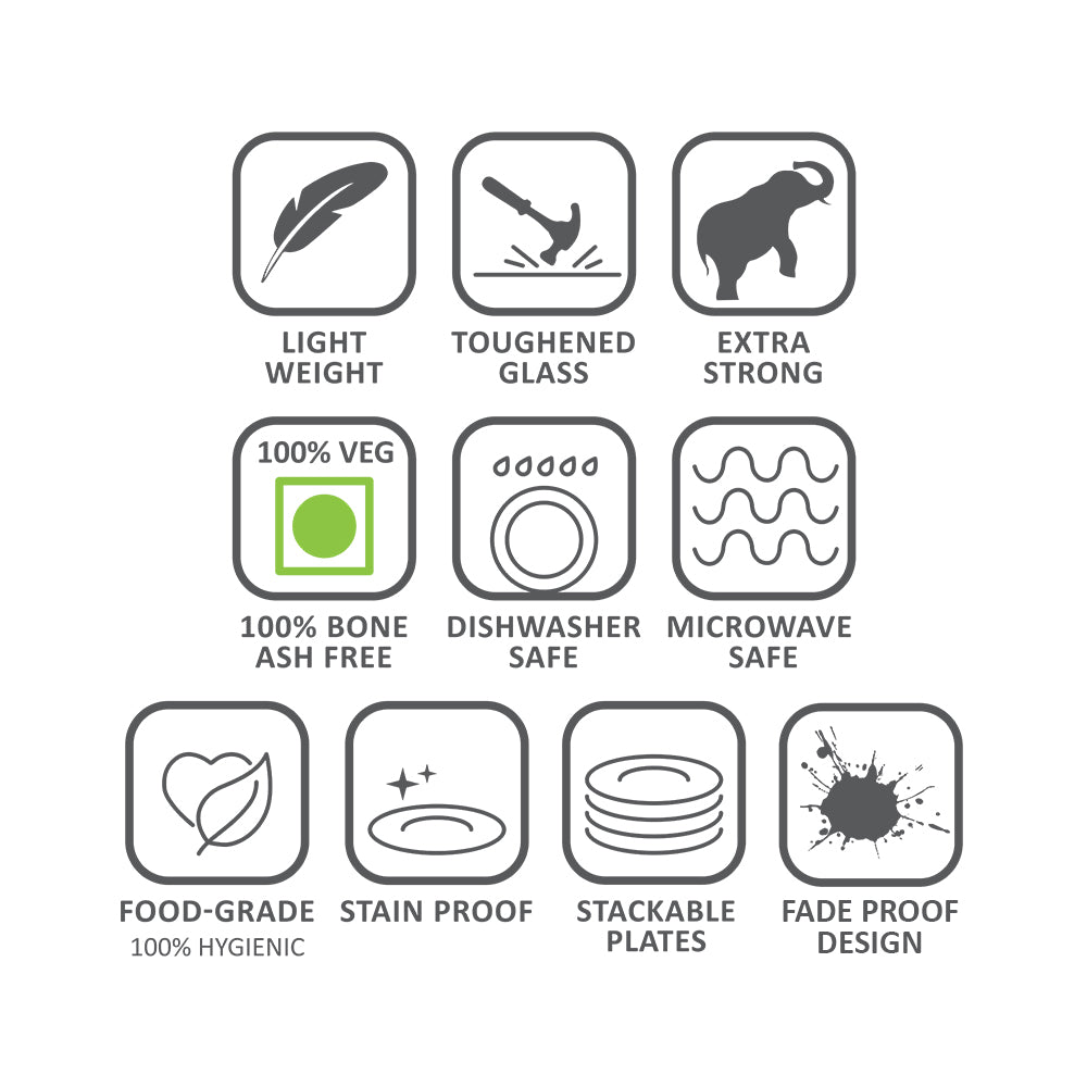 Larah products are lightweight, yet extra strong, and can withstand rough usage without chipping or scratching - so they always look as good as new. They are also microwave and dishwasher safe, making them a convenient daily use option. The beautiful designs are perfect both for special occasions, and to make everyday special!