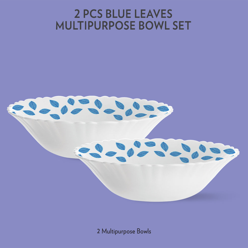 Larah by Borosil Blue Leaves Multipurpose Bowl, 2 pc Set