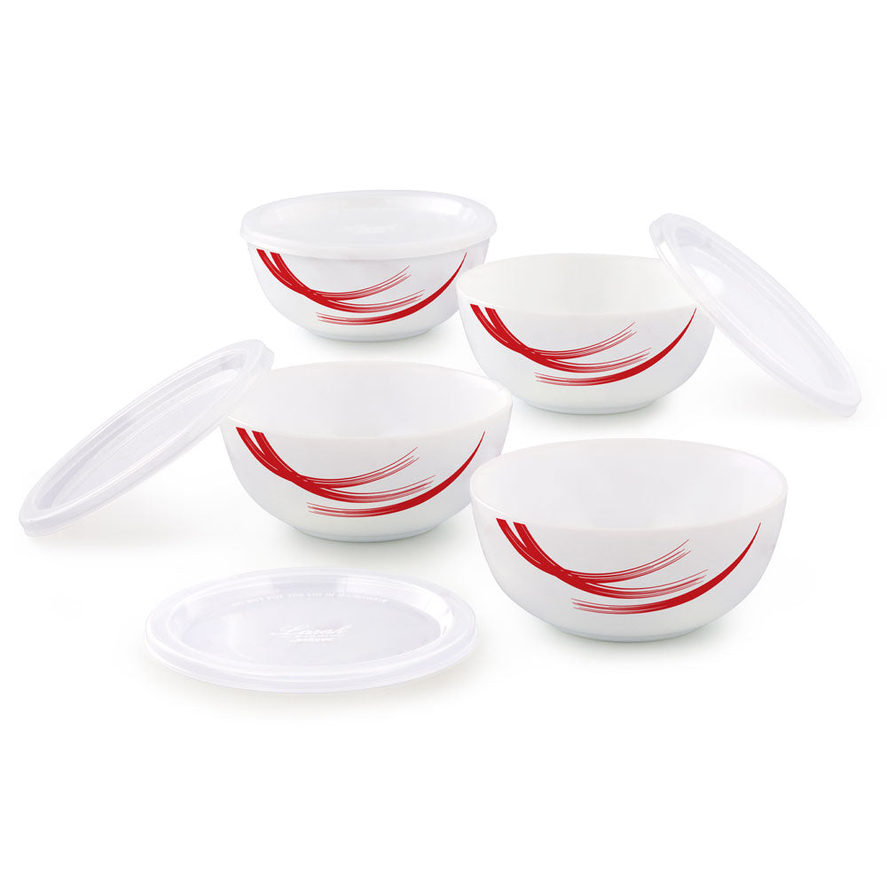 Larah by Borosil Red Stella Snack Bowl with Cover, 4pcSet+4Lids