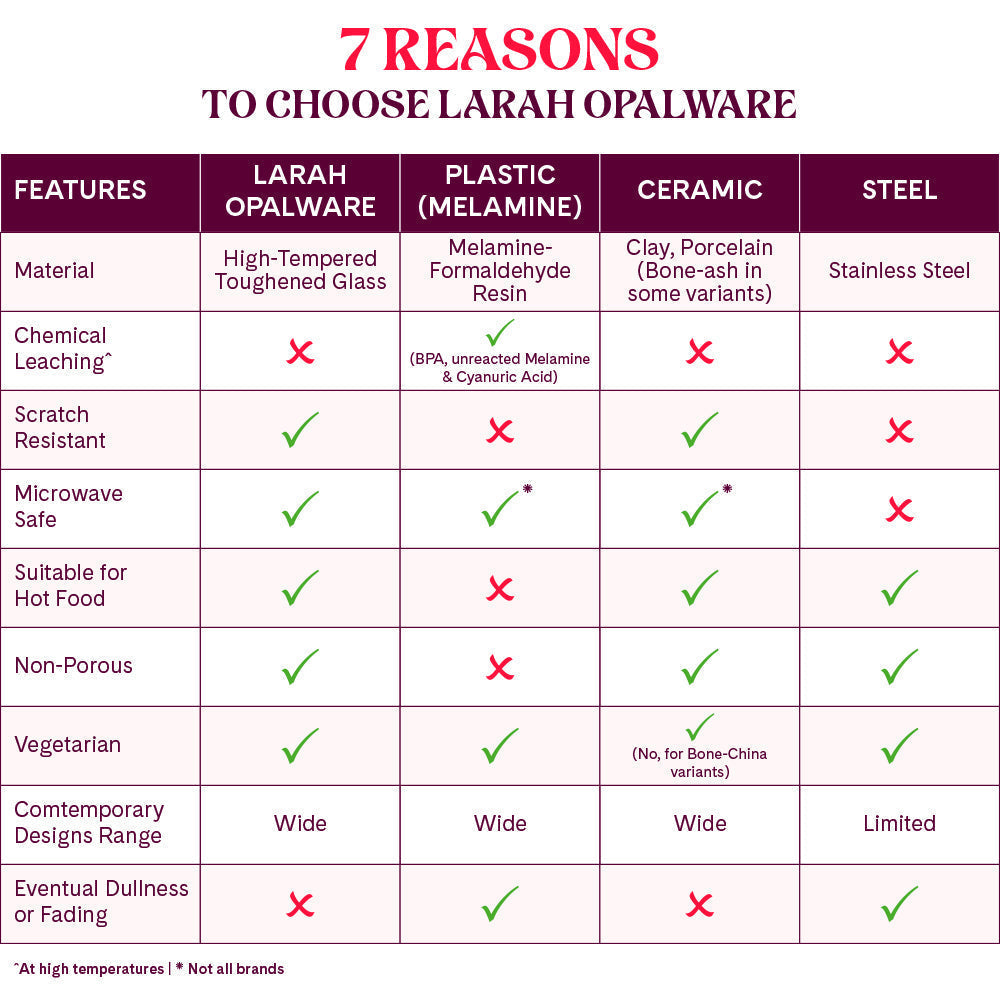 Larah products are lightweight, yet extra strong, and can withstand rough usage without chipping or scratching - so they always look as good as new. They are also microwave and dishwasher safe, making them a convenient daily use option. The beautiful designs are perfect both for special occasions, and to make everyday special!