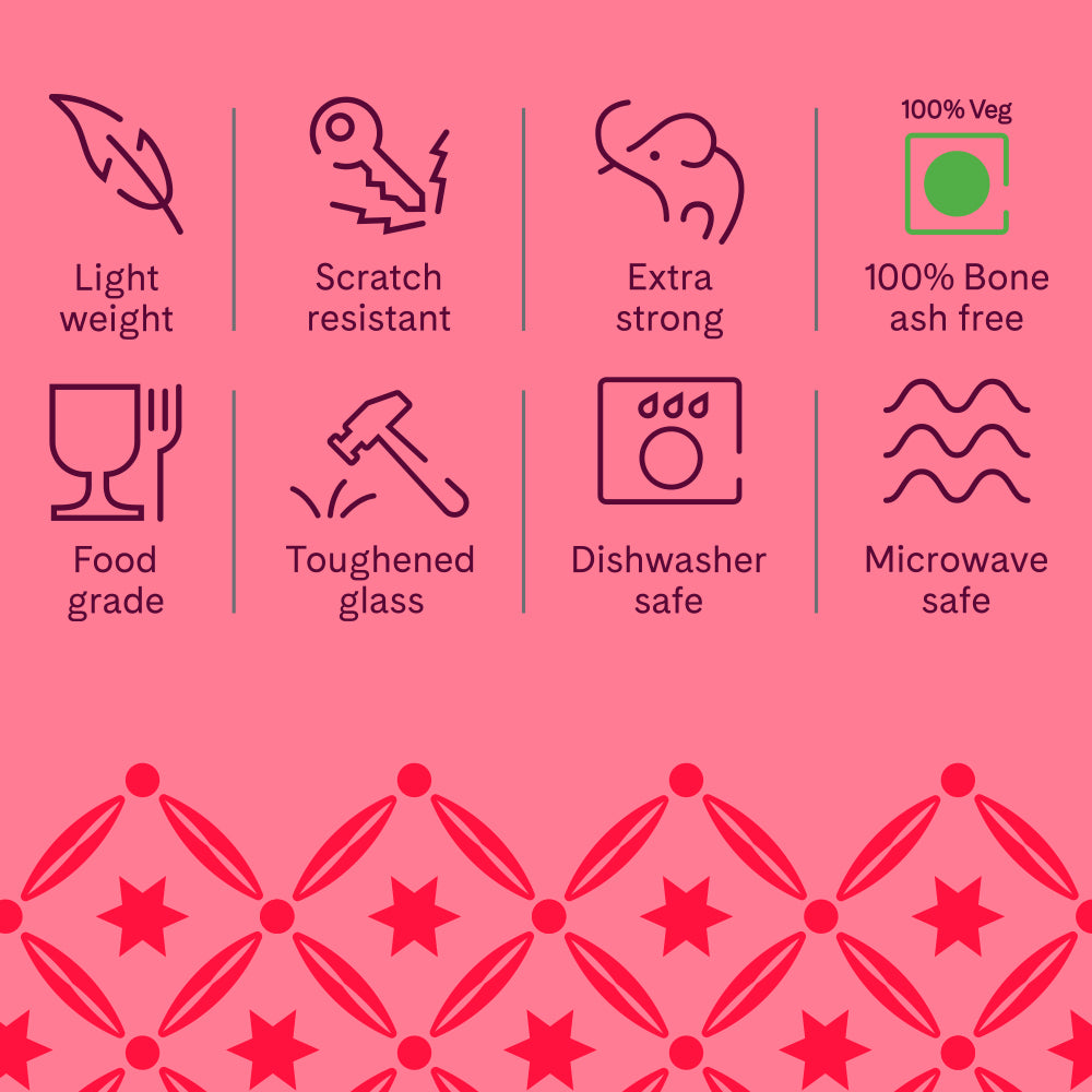 Larah products are lightweight, yet extra strong, and can withstand rough usage without chipping or scratching - so they always look as good as new. They are also microwave and dishwasher safe, making them a convenient daily use option. The beautiful designs are perfect both for special occasions, and to make everyday special!
