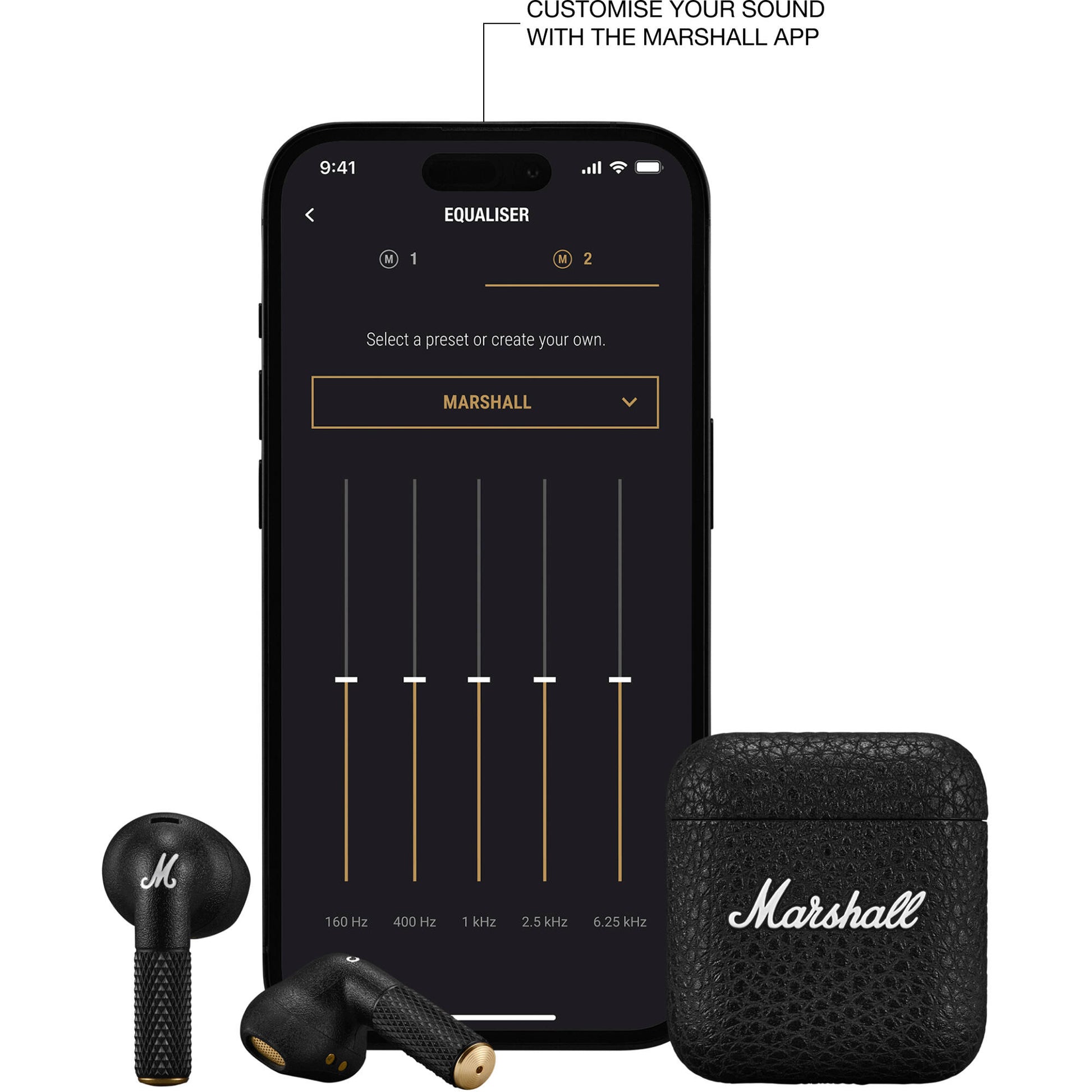 Touch-responsive and mirrored earbuds let you control playback, calls, and EQ settings from either side. Auto-pause when removed and resumes when reinserted.Customizable via Marshall App