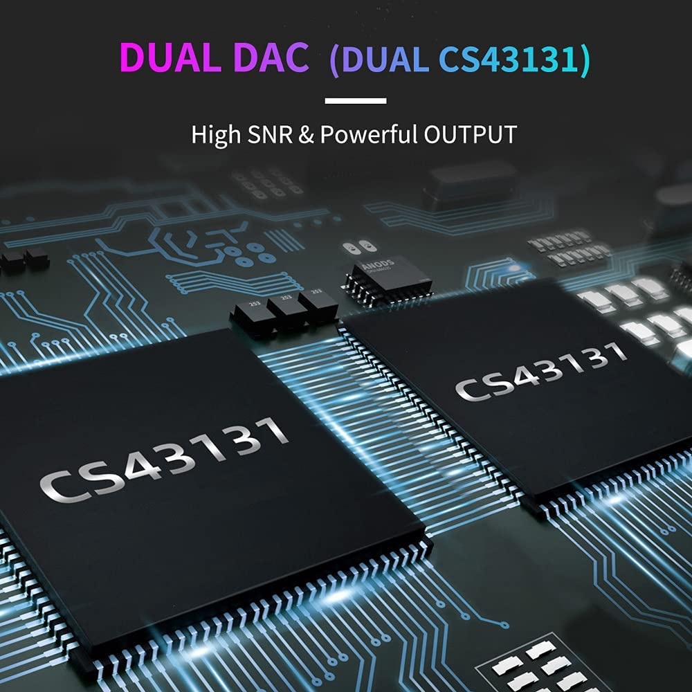 The 3.5mm headphone connector will meet the need of most music lovers. The dual CS43131 Dac chips bing the high-pass power to your high impedance headphone.