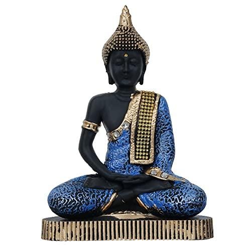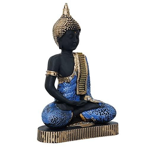 Premium Meditating Sitting Gautam Buddha Idol Statue Showpiece for Home ( Black and Blue)