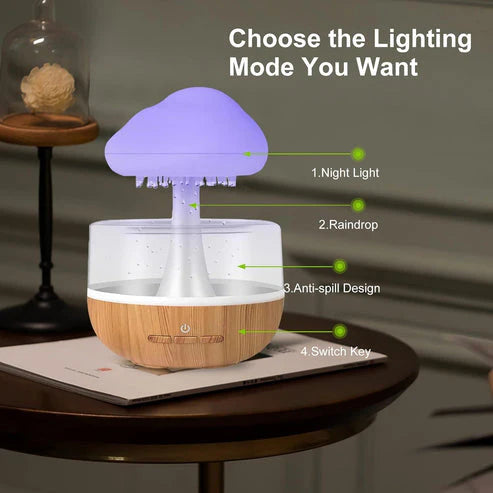 - Perfect for Relaxation & Sleep: The gentle mist and soft lighting create the ideal setting for rest, relaxation, and sleep. Whether you're in the bedroom, nursery, or office, the Rain Cloud Humidifier offers a peaceful, comfortable atmosphere that promotes better air quality and a restful mood.