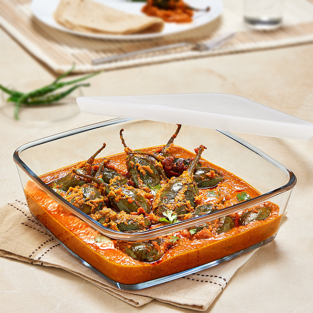Borosil's timeless bake and serve dishes with lids are the perfect choice not just to bake and serve but also to store. Just put the lid on and store your food in the fridge - then put it in the microwave or oven when you are ready to eat. Because these dishes are made of 100% borosilicate glass, you can put them straight from the fridge to the oven, or oven to fridge without worrying that they will crack.