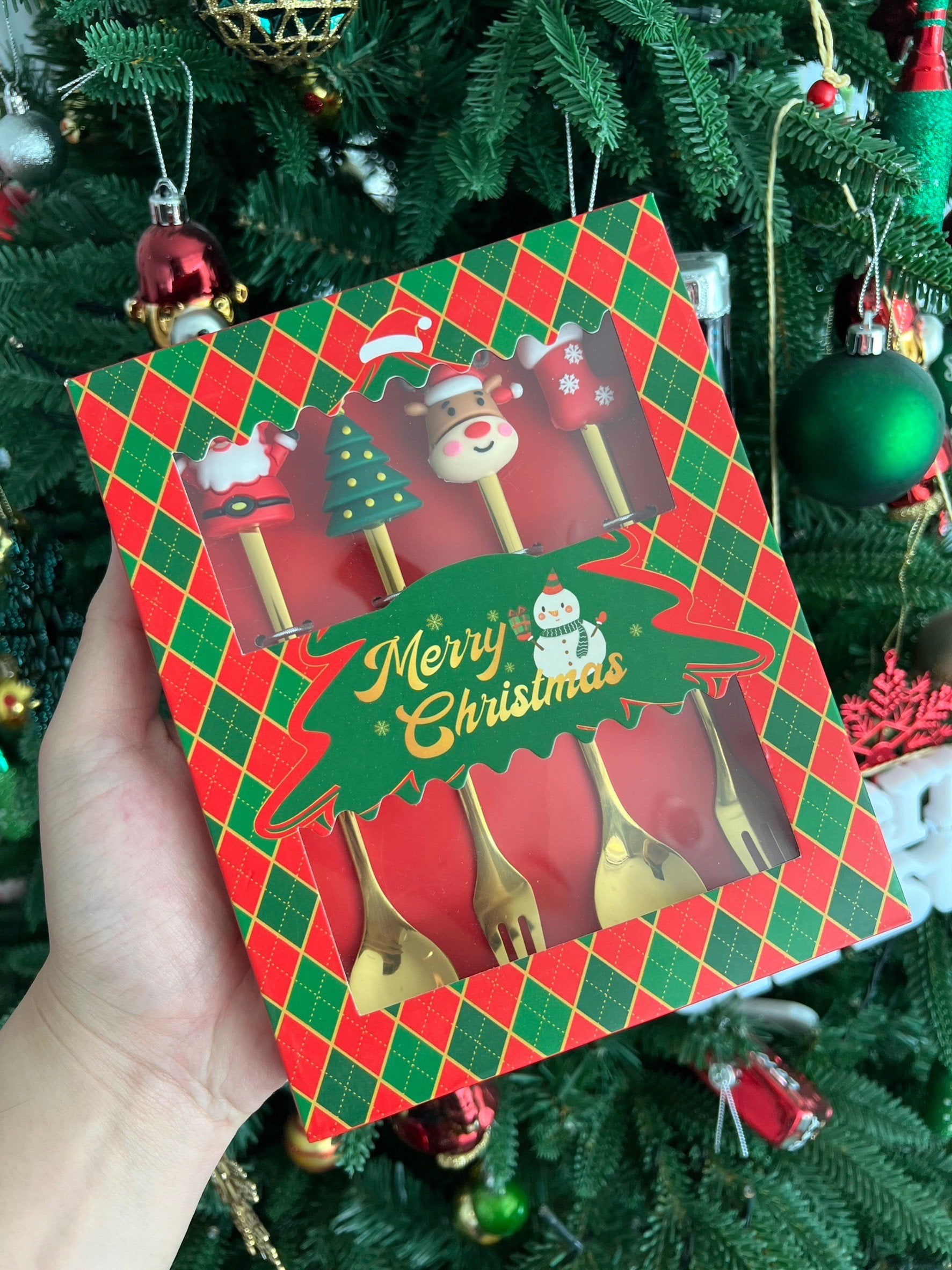 - Stainless Steel: This Christmas spoon fork set is made of premium stainless steel material so that it is rust proof and suitable for Ice cream and pastries
