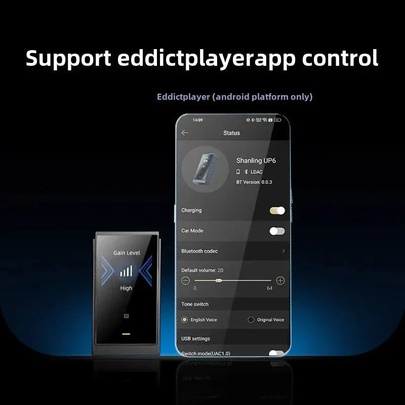 A vivid 1.54-inch LCD screen displays playback details, codecs, battery level, and more. Use the Eddict Player App to control the UP6 remotely—adjust settings, EQ, codec selection, DAC mode, volume, and push OTA firmware updates, all from your smartphone.