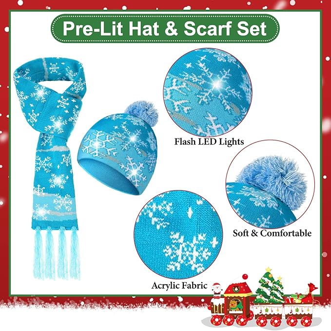 - Creative Design - Scarves and hats with three ways of blinking lights with classic Christmas element patterns. Create a casual and stylish style that can make you stand out from the crowd.