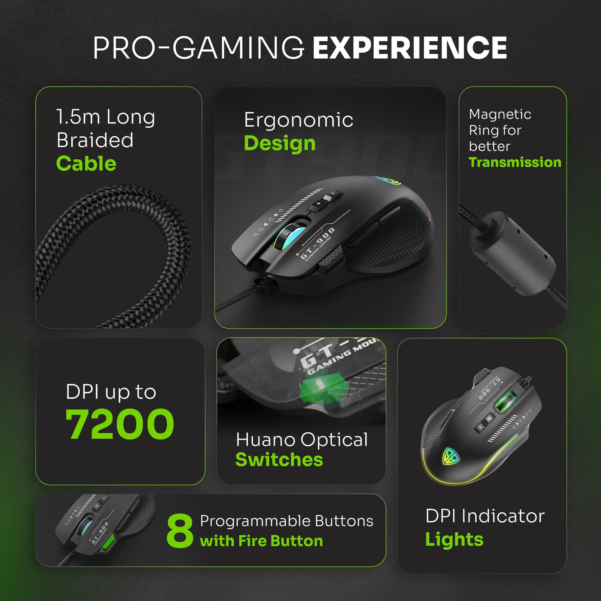 High Precision Sensor: Ensures accurate and responsive tracking for competitive gaming.